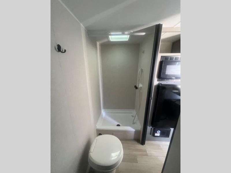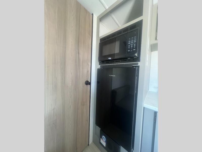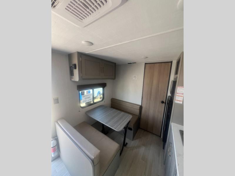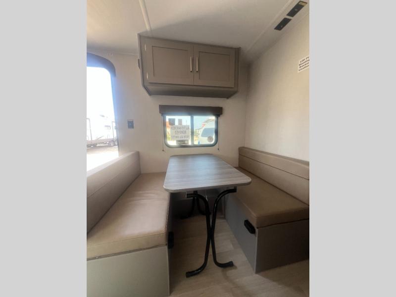 It's time to enjoy the great outdoors with family and friends at the campgrounds you like to meet everyone at! This trailer will allow three to four to camp comfortability with amenities such as a two burner cooktop, a 3.3 cu. ft. refrigerator, and a spacious rear full bathroom. The booth dinette offers a place to dine, read a book and even house an overnight guest. This model also includes a walk-around queen bed that will make your space feel a little more like home!