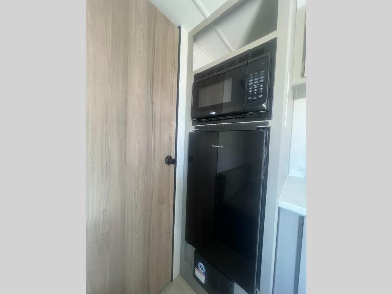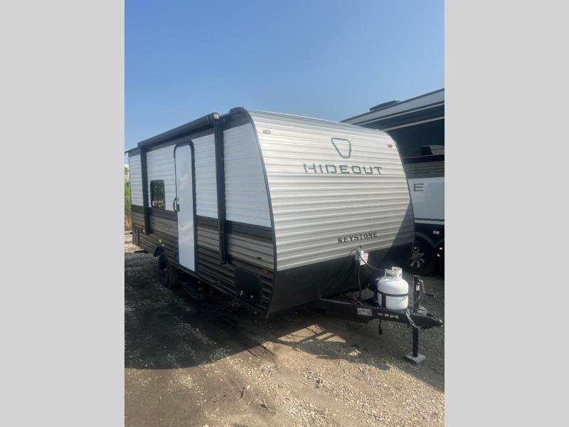 With any Hideout Mini travel trailer by Keystone, you will enjoy lightweight towing thanks to their single-axle! The AlphaPly TPO roof membrane is ultra durable, and the power awning will provide protection from the sun as you relax in your camp chairs outside. Each model includes blackout night shades, LED lighting, plus many more interior comforts. There is also a roof A/C and 20K BTU furnace to keep you comfortable, plus a tankless water heater for endless hot showers!