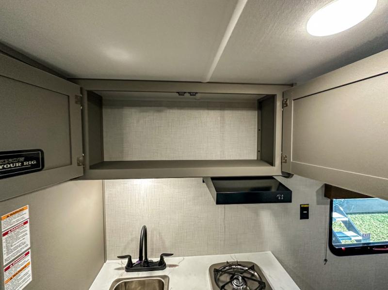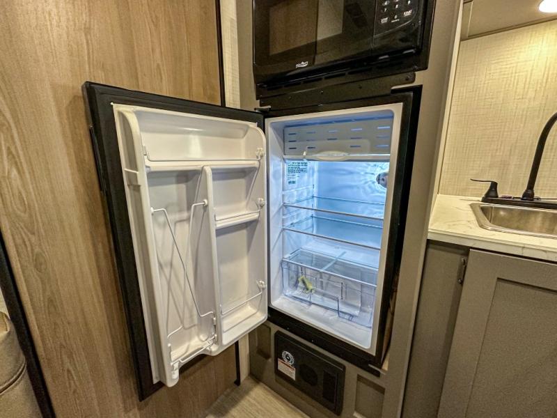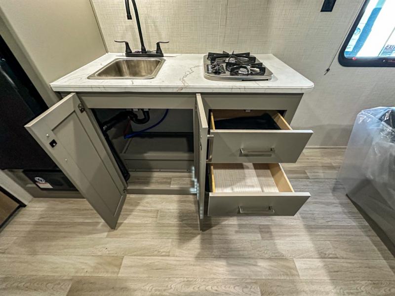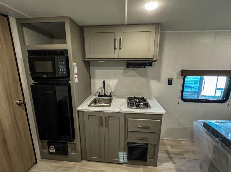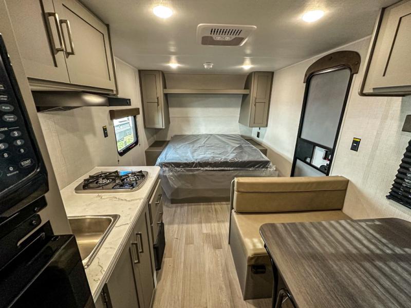With any Hideout Mini travel trailer by Keystone, you will enjoy lightweight towing thanks to their single-axle! The AlphaPly TPO roof membrane is ultra durable, and the power awning will provide protection from the sun as you relax in your camp chairs outside. Each model includes blackout night shades, LED lighting, plus many more interior comforts. There is also a roof A/C and 20K BTU furnace to keep you comfortable, plus a tankless water heater for endless hot showers!