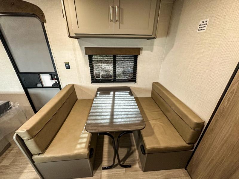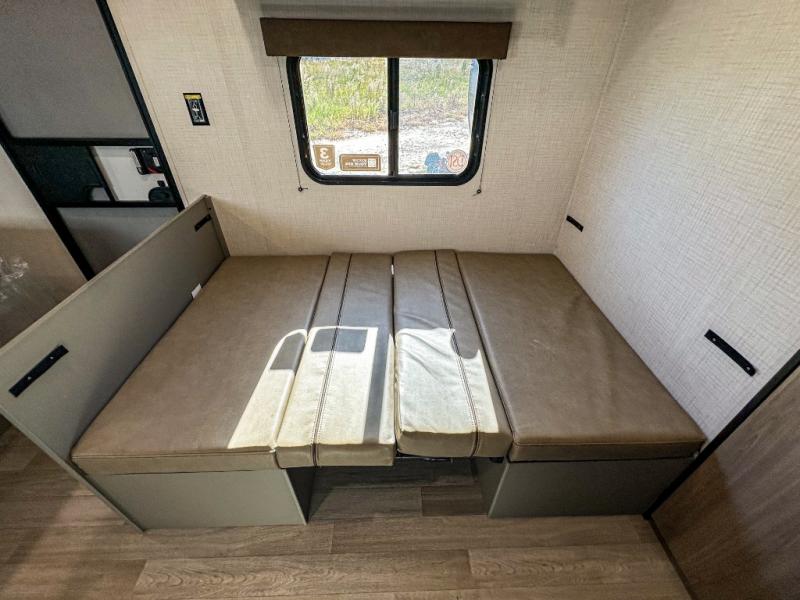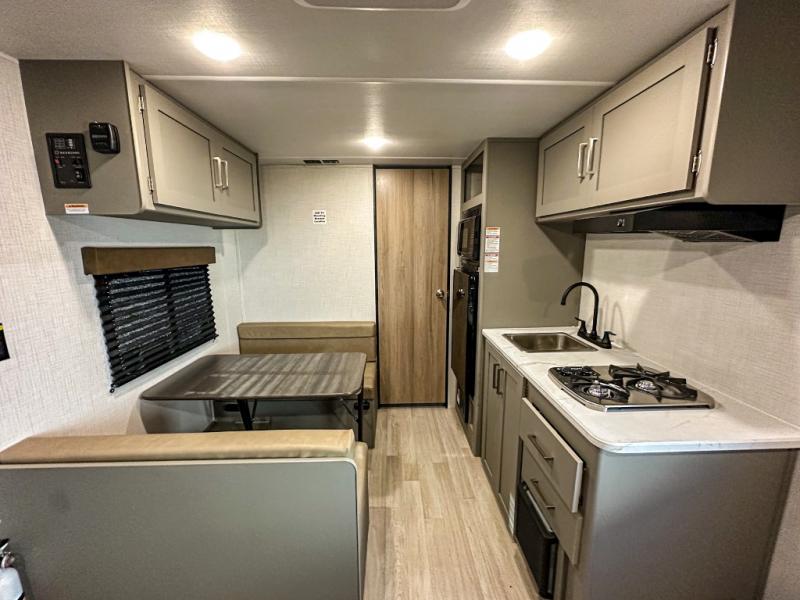 It's time to enjoy the great outdoors with family and friends at the campgrounds you like to meet everyone at! This trailer will allow three to four to camp comfortability with amenities such as a two burner cooktop, a 3.3 cu. ft. refrigerator, and a spacious rear full bathroom. The booth dinette offers a place to dine, read a book and even house an overnight guest. This model also includes a walk-around queen bed that will make your space feel a little more like home!