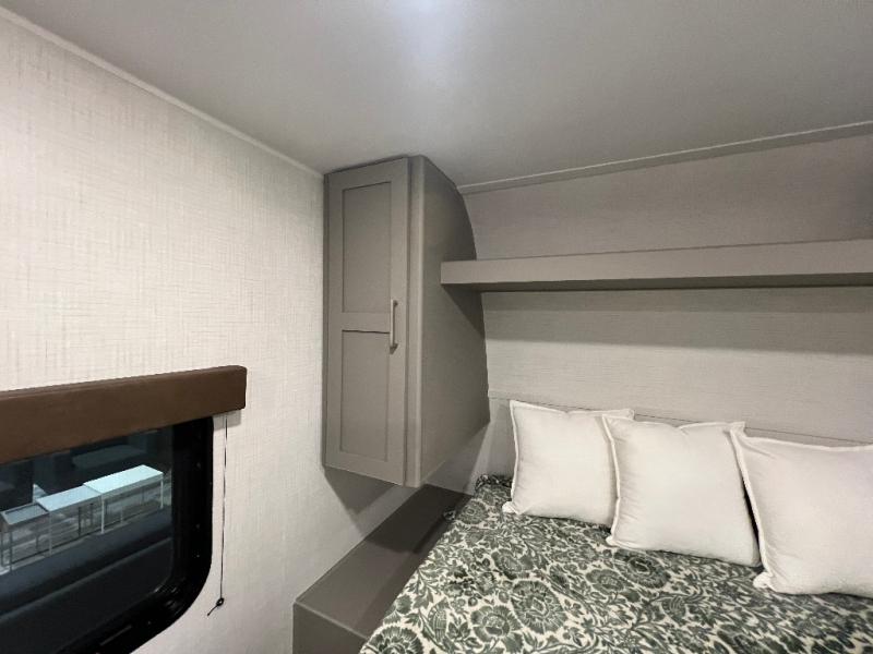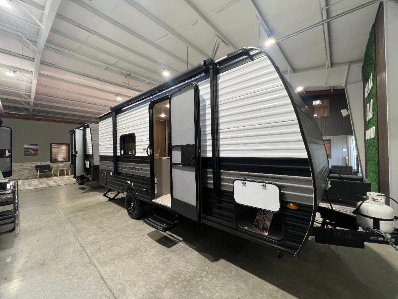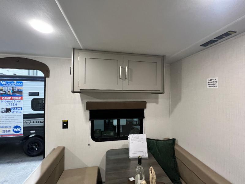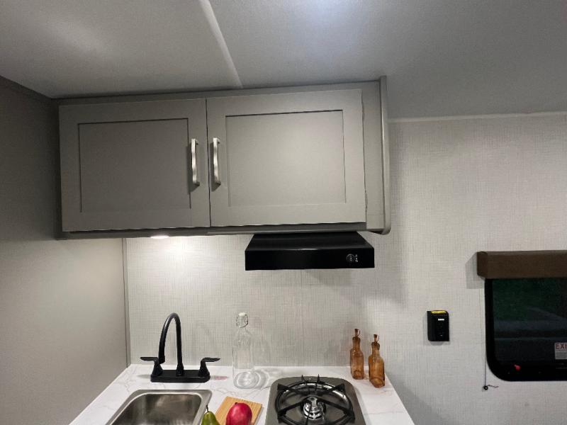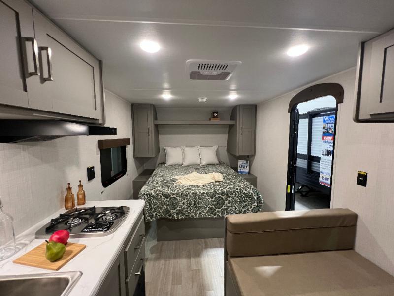 With any Hideout Mini travel trailer by Keystone, you will enjoy lightweight towing thanks to their single-axle! The AlphaPly TPO roof membrane is ultra durable, and the power awning will provide protection from the sun as you relax in your camp chairs outside. Each model includes blackout night shades, LED lighting, plus many more interior comforts. There is also a roof A/C and 20K BTU furnace to keep you comfortable, plus a tankless water heater for endless hot showers!