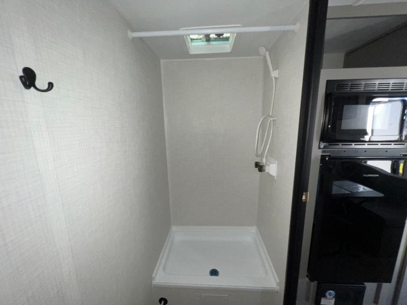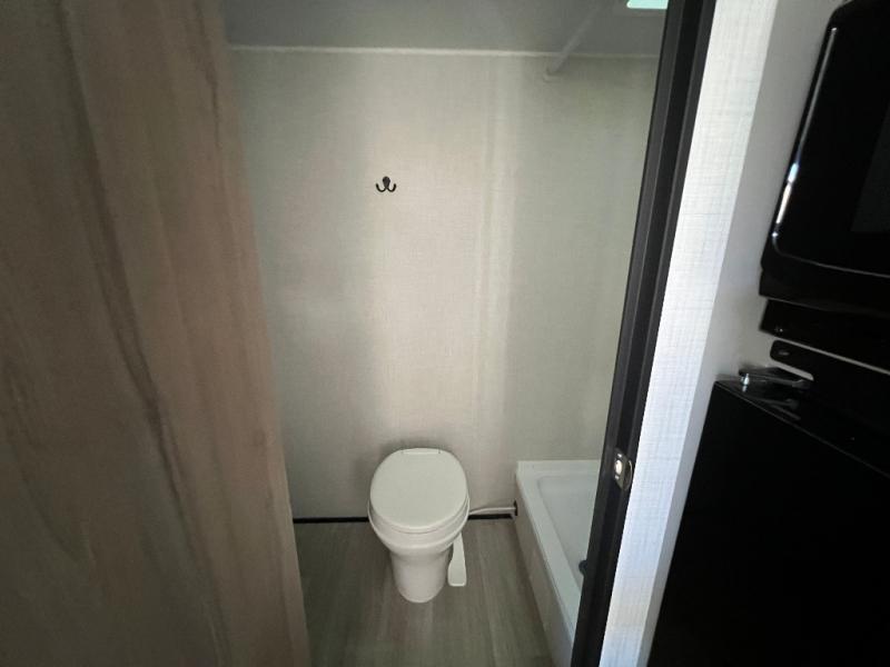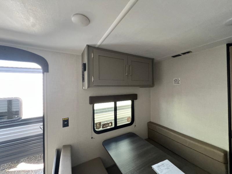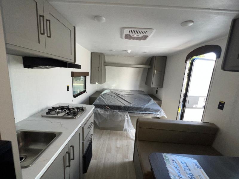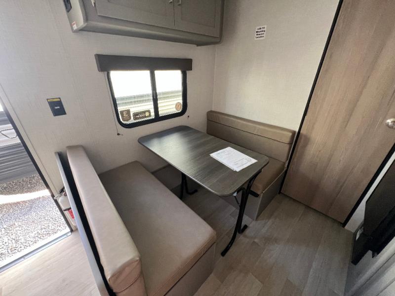 It's time to enjoy the great outdoors with family and friends at the campgrounds you like to meet everyone at! This trailer will allow three to four to camp comfortability with amenities such as a two burner cooktop, a 3.3 cu. ft. refrigerator, and a spacious rear full bathroom. The booth dinette offers a place to dine, read a book and even house an overnight guest. This model also includes a walk-around queen bed that will make your space feel a little more like home!