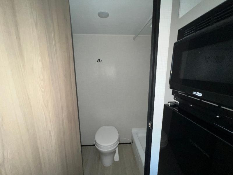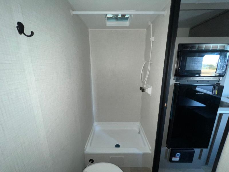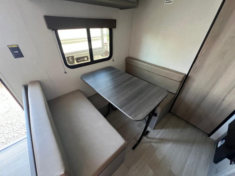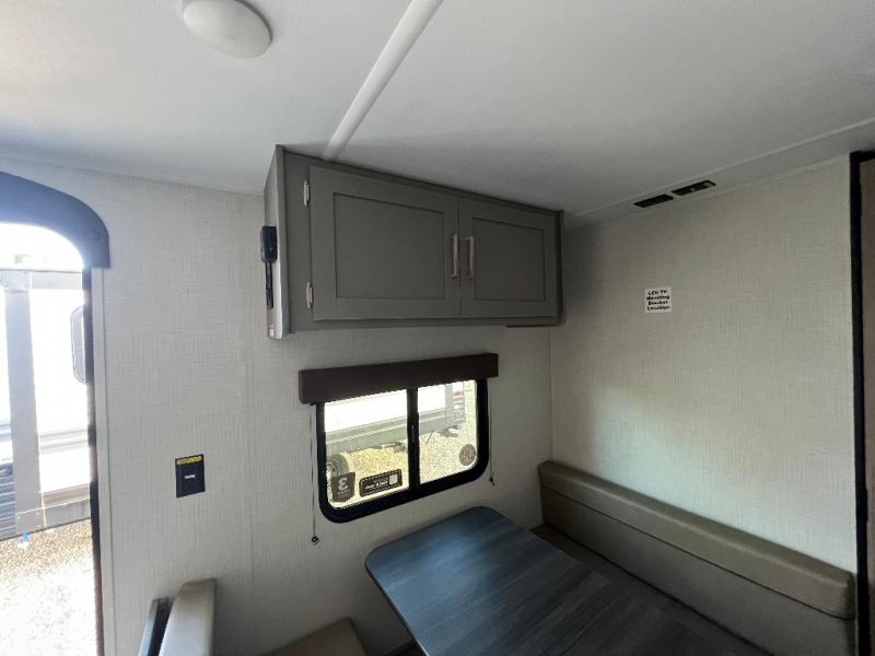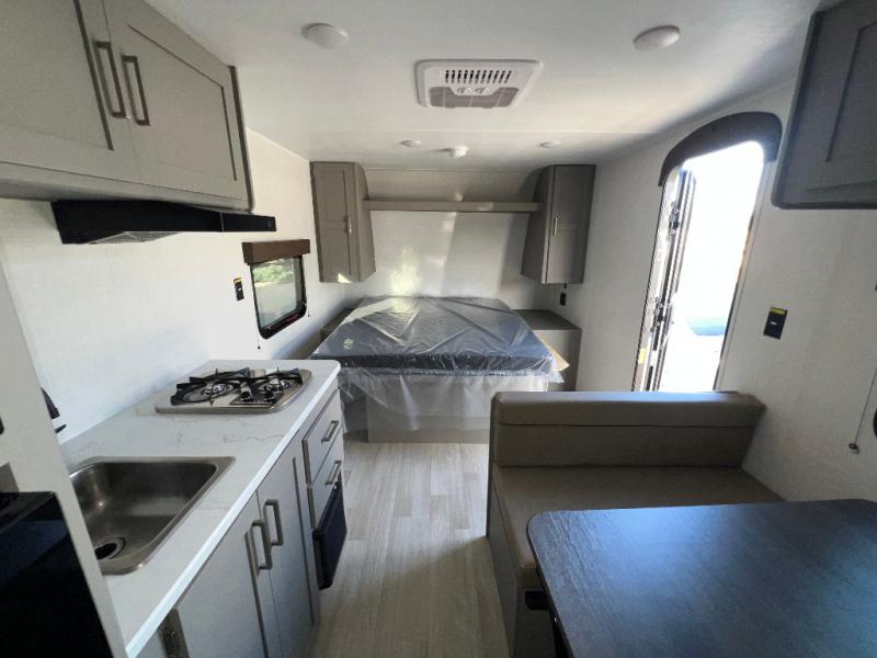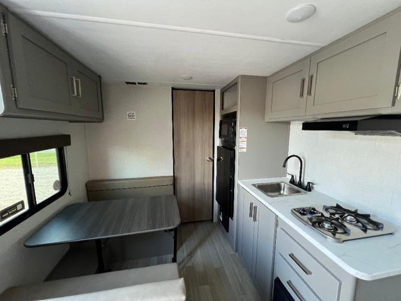 It's time to enjoy the great outdoors with family and friends at the campgrounds you like to meet everyone at! This trailer will allow three to four to camp comfortability with amenities such as a two burner cooktop, a 3.3 cu. ft. refrigerator, and a spacious rear full bathroom. The booth dinette offers a place to dine, read a book and even house an overnight guest. This model also includes a walk-around queen bed that will make your space feel a little more like home!