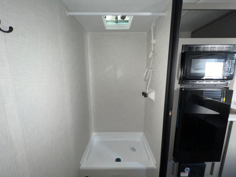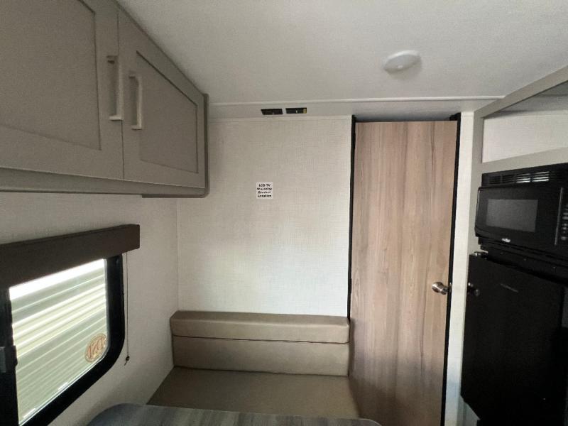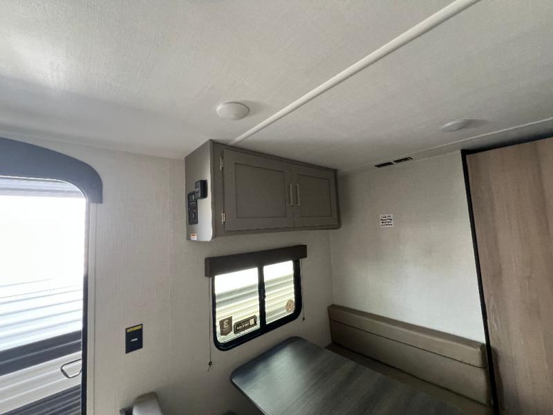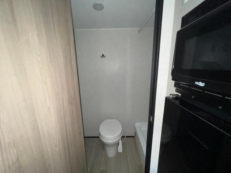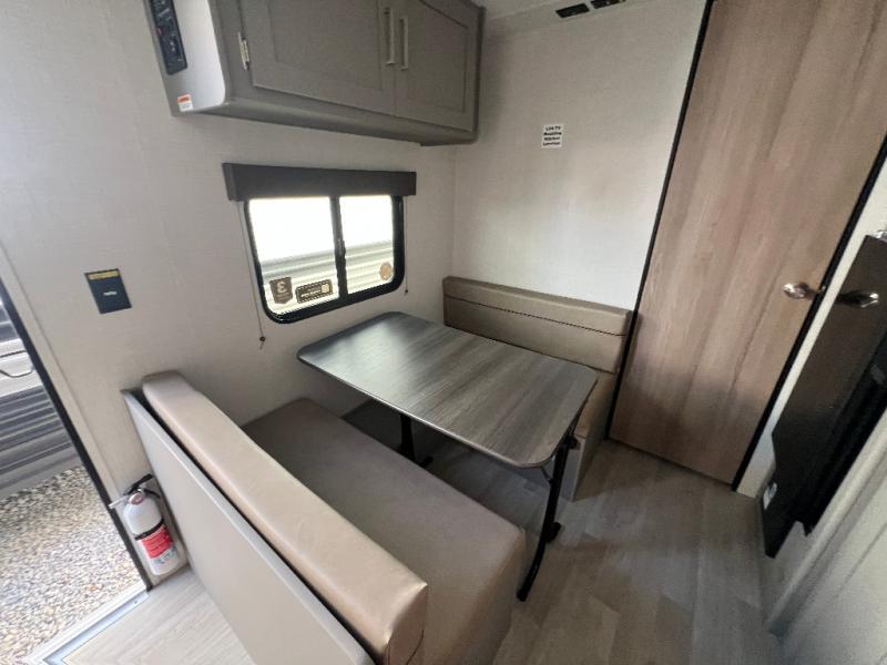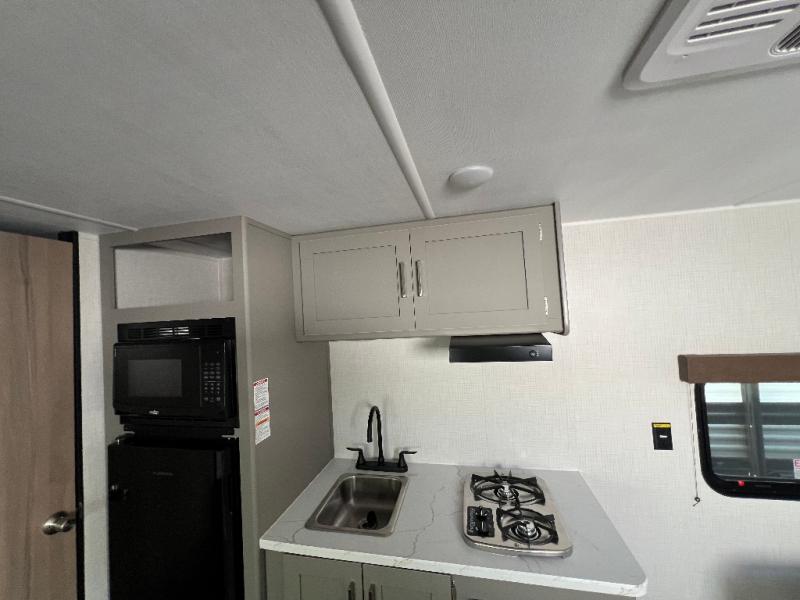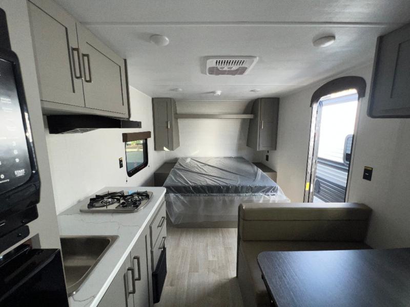 It's time to enjoy the great outdoors with family and friends at the campgrounds you like to meet everyone at! This trailer will allow three to four to camp comfortability with amenities such as a two burner cooktop, a 3.3 cu. ft. refrigerator, and a spacious rear full bathroom. The booth dinette offers a place to dine, read a book and even house an overnight guest. This model also includes a walk-around queen bed that will make your space feel a little more like home!