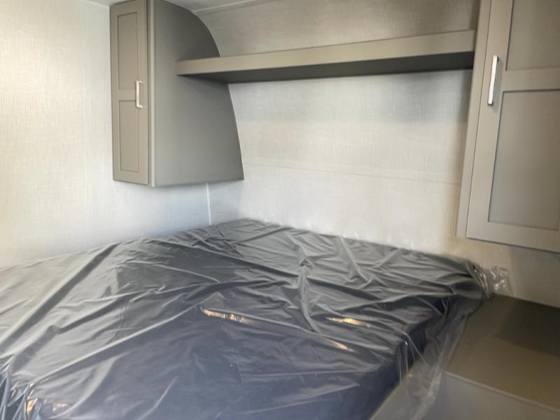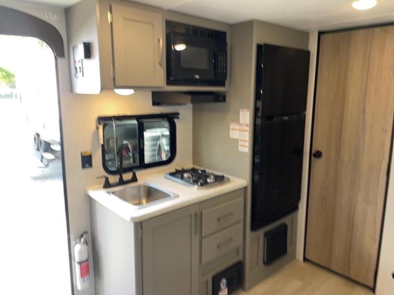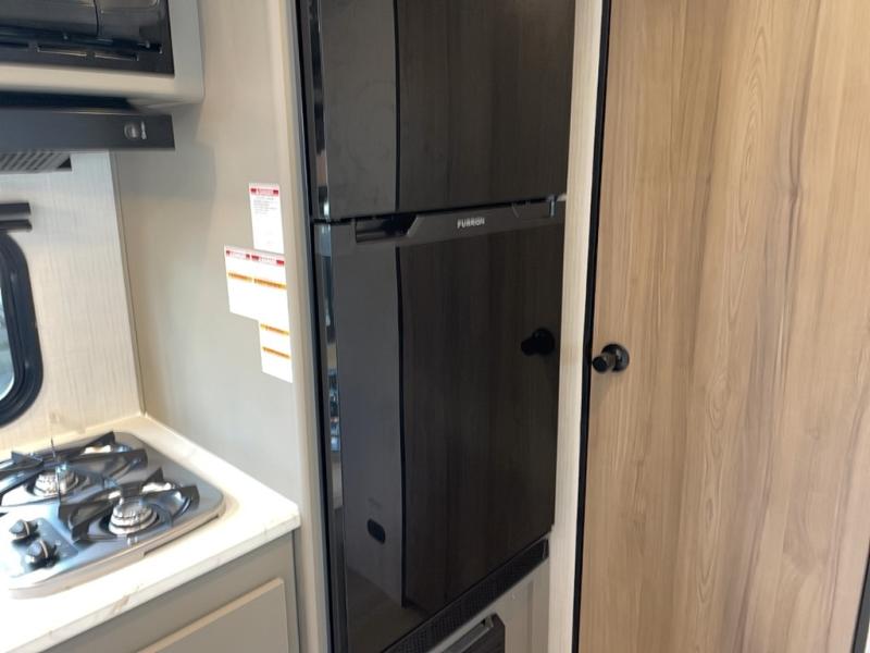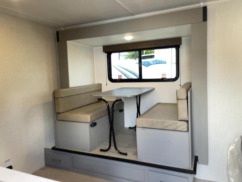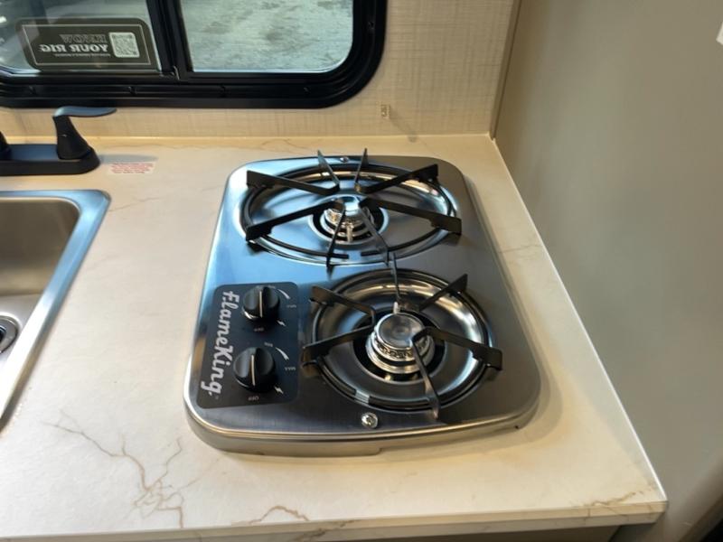It's time to enjoy the great outdoors with family and friends at the campgrounds you like to meet everyone at! This trailer will allow three to four to camp comfortability with amenities such as a two burner cooktop, a 7.7 cu. ft. refrigerator, and a spacious rear full bathroom. The booth dinette slide offers a place to dine, read a book and even provides sleeping space and storage drawers for board games or throw blankets. The slide gives the interior more floor space as well. This model also includes a walk-around queen bed that will make your space feel a little more like home!