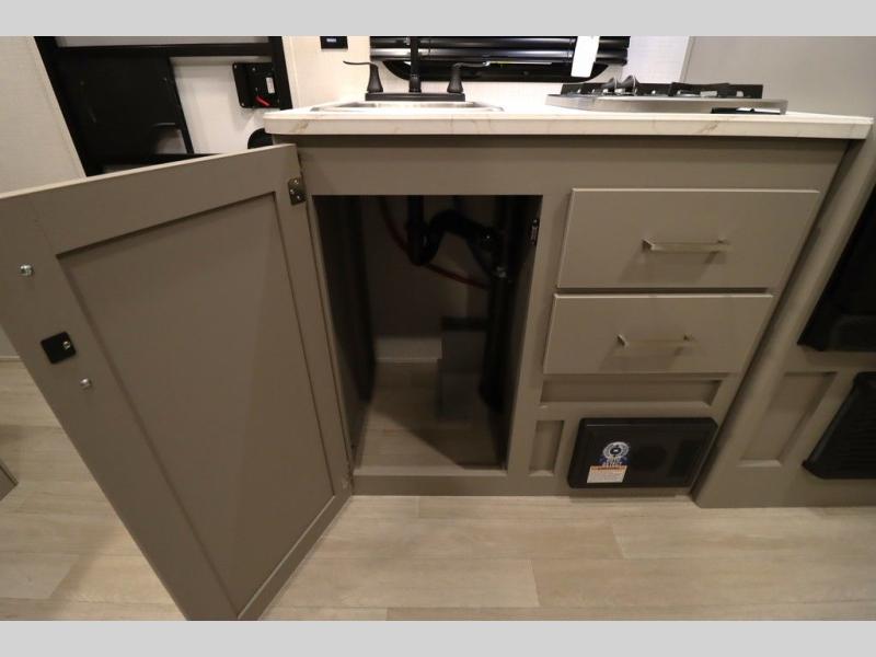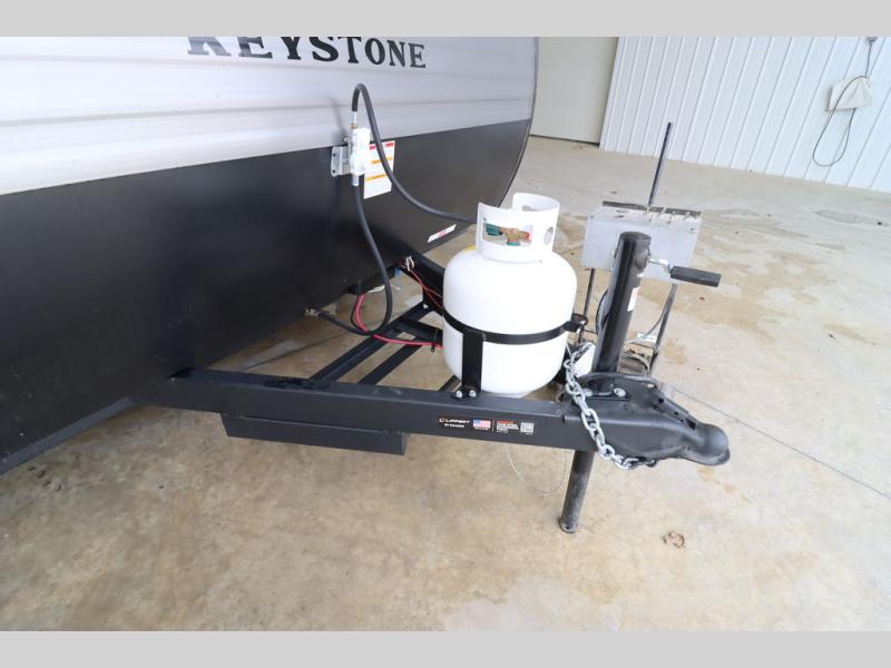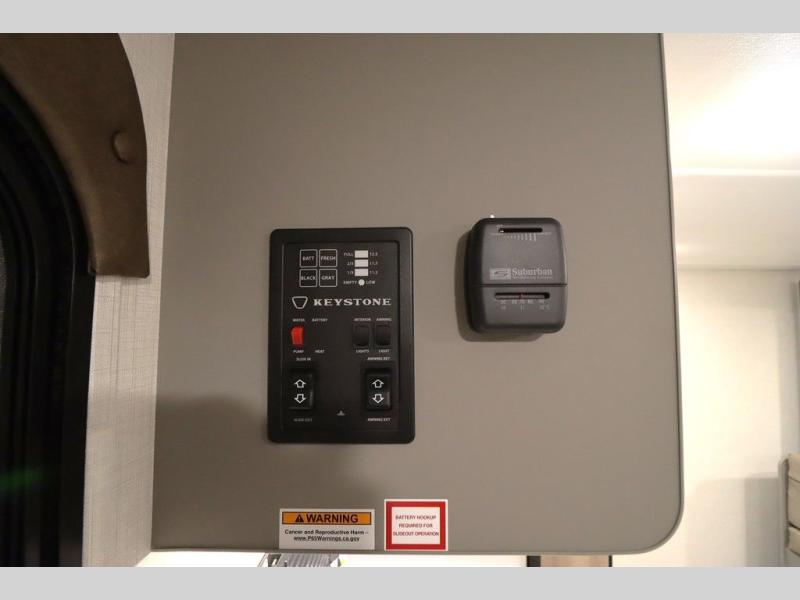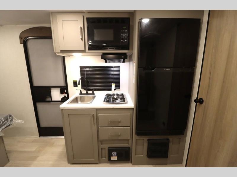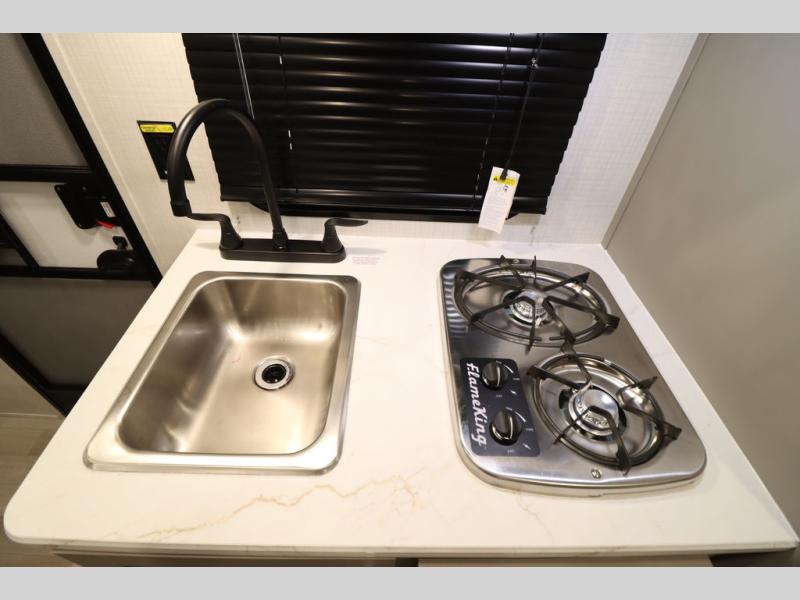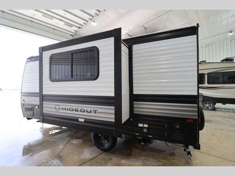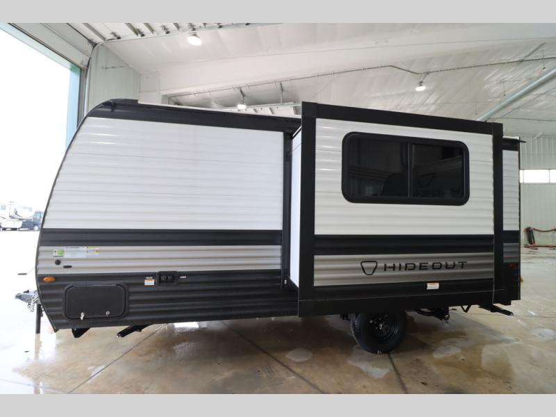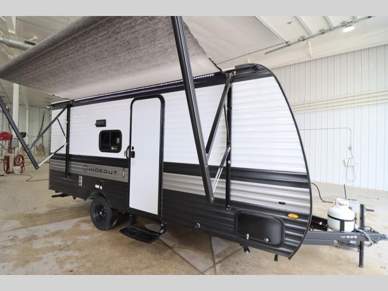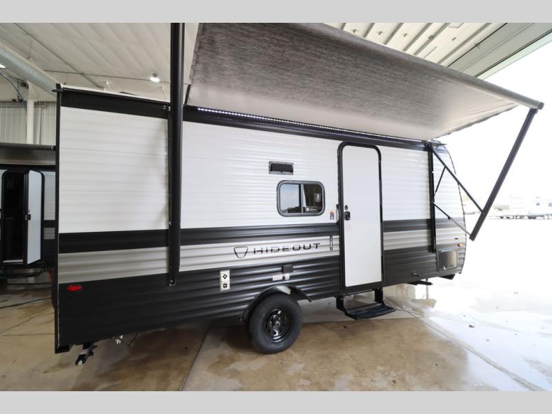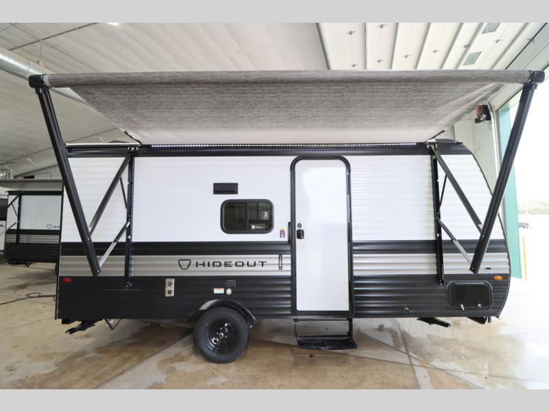 With any Hideout Mini travel trailer by Keystone, you will enjoy lightweight towing thanks to their single-axle! The AlphaPly TPO roof membrane is ultra durable, and the power awning will provide protection from the sun as you relax in your camp chairs outside. Each model includes blackout night shades, LED lighting, plus many more interior comforts. There is also a roof A/C and 20K BTU furnace to keep you comfortable, plus a tankless water heater for endless hot showers!