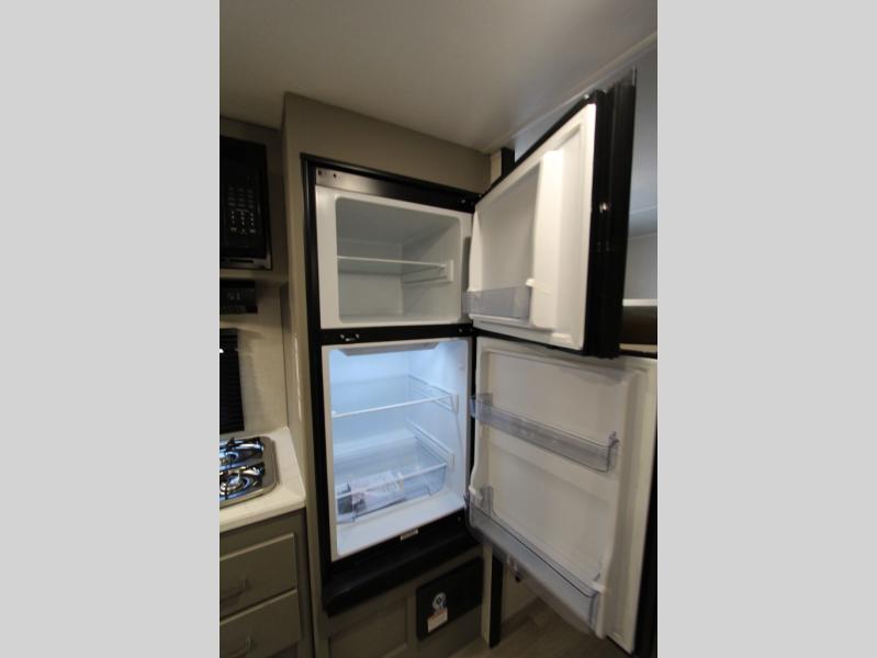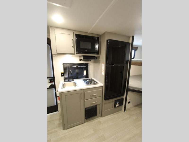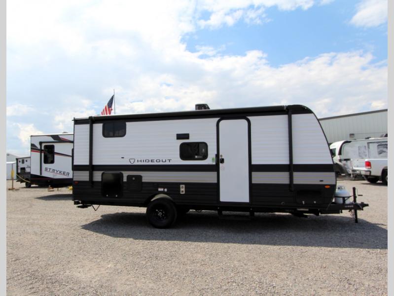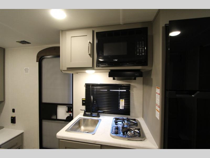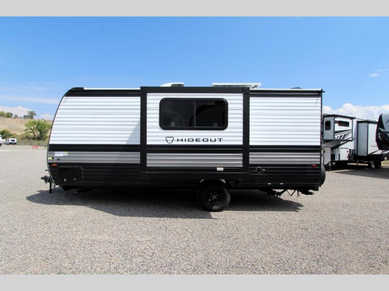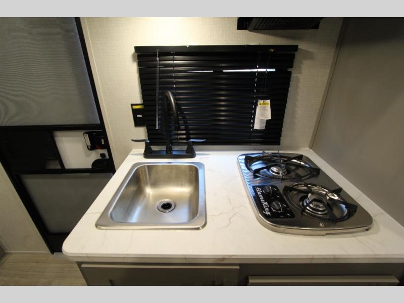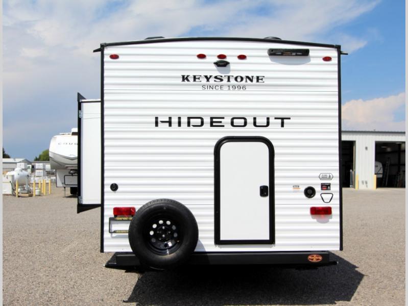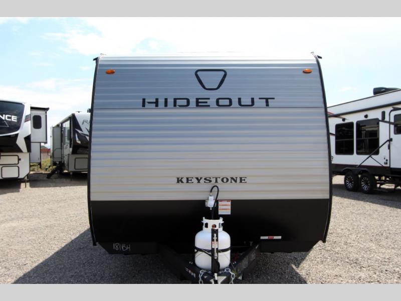 With any Hideout Mini travel trailer by Keystone, you will enjoy lightweight towing thanks to their single-axle! The AlphaPly TPO roof membrane is ultra durable, and the power awning will provide protection from the sun as you relax in your camp chairs outside. Each model includes blackout night shades, LED lighting, plus many more interior comforts. There is also a roof A/C and 20K BTU furnace to keep you comfortable, plus a tankless water heater for endless hot showers!