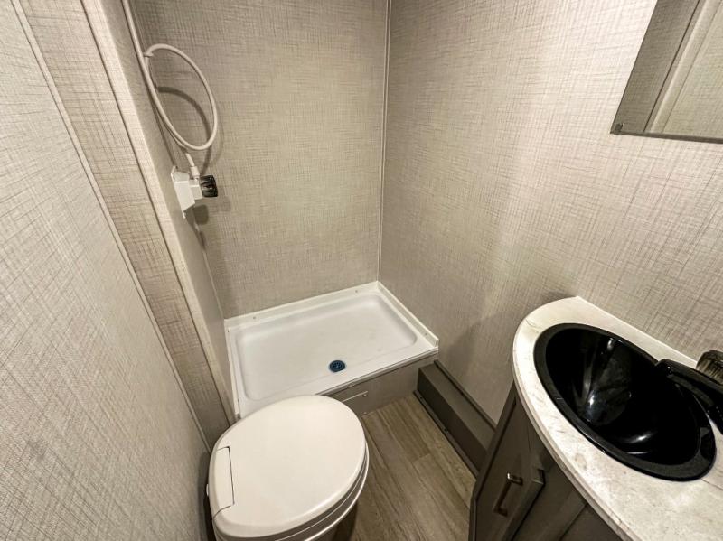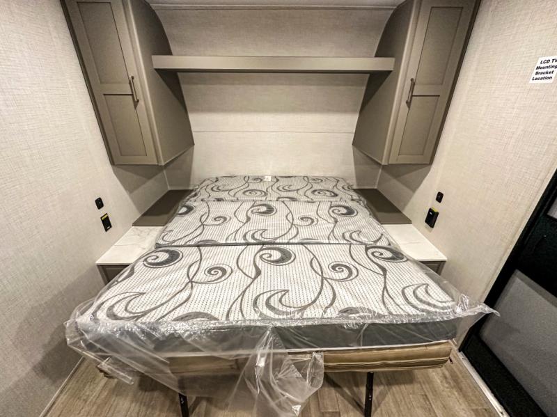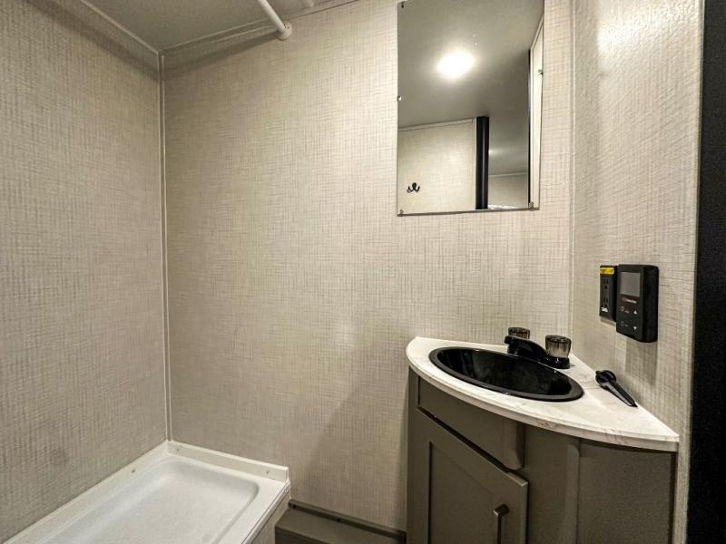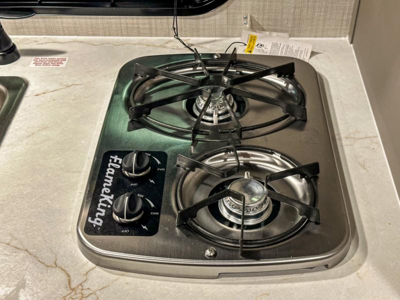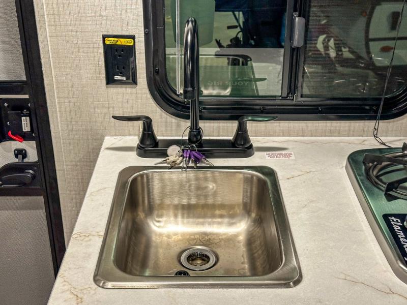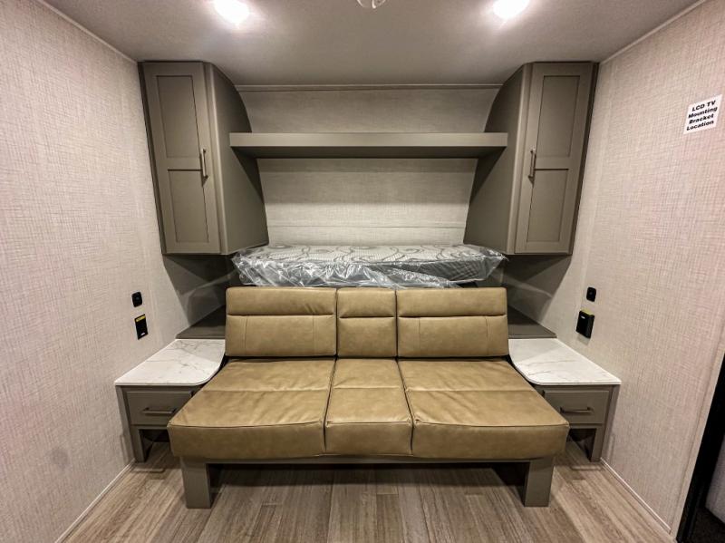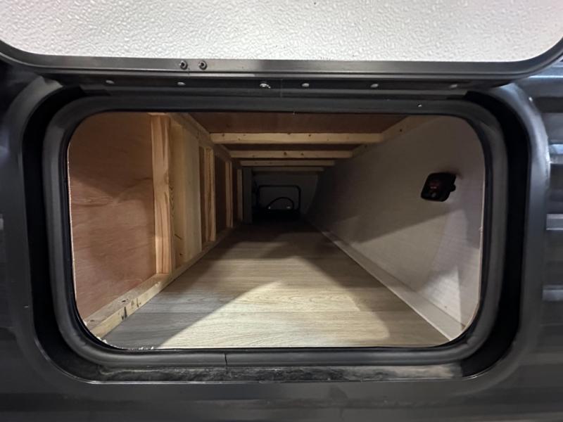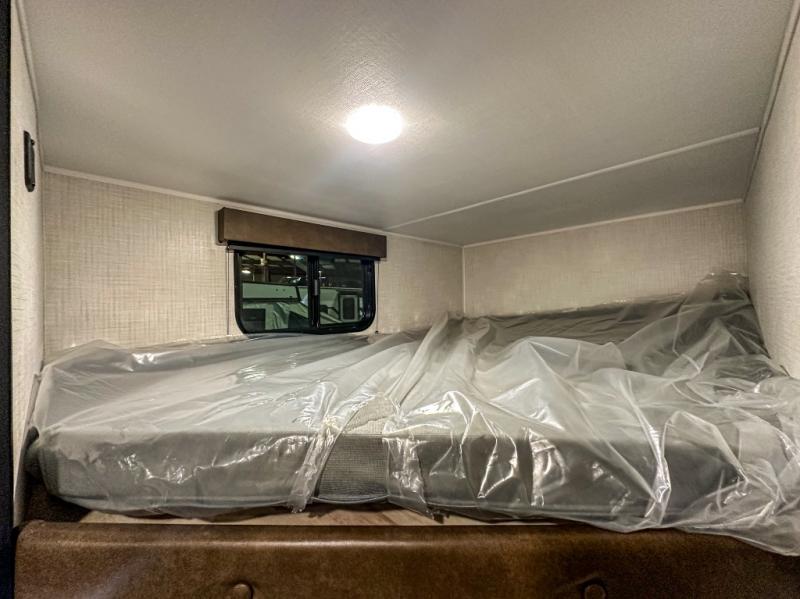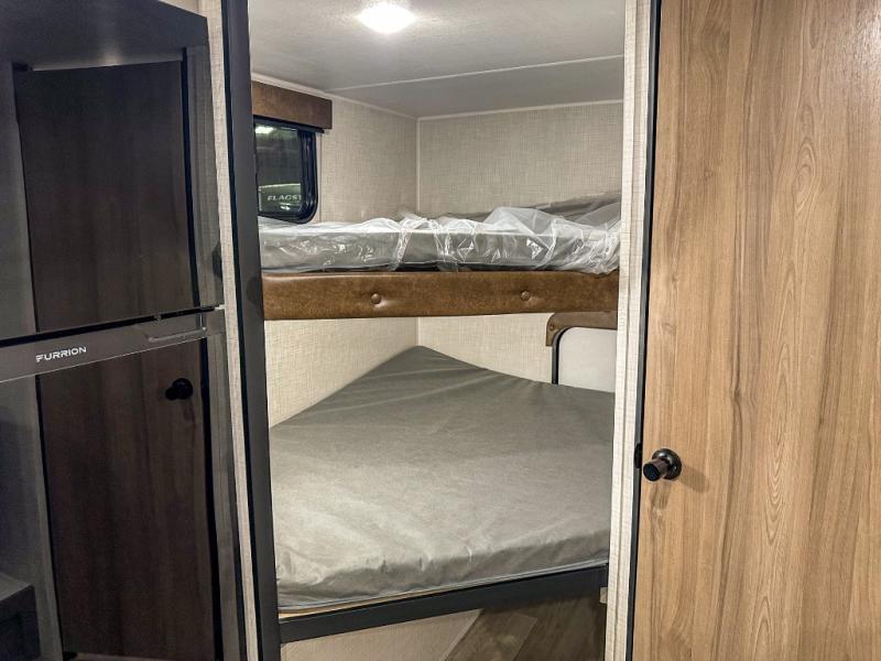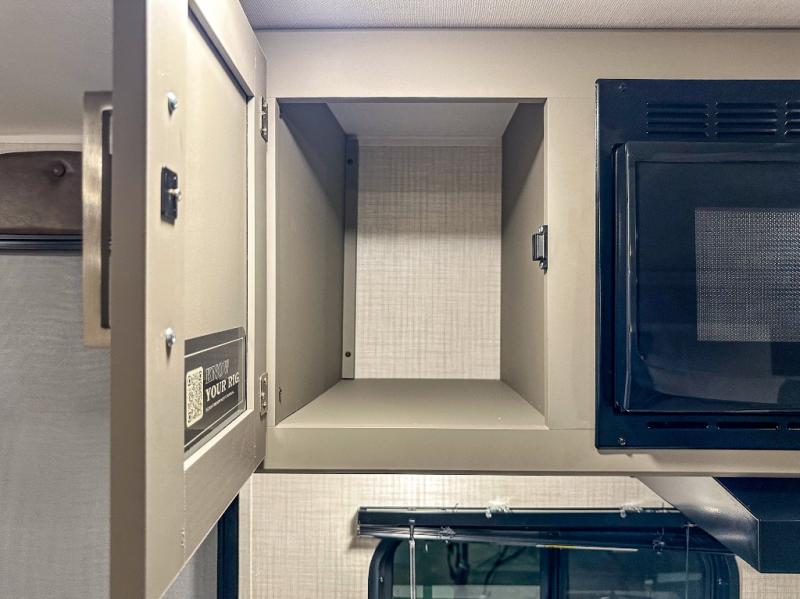 You will love how versatile this travel trailer is with its front Murphy bed that has a queen bed to lay your head on at night, folds down into a sofa, and even has storage underneath it! There is a set of double bunk beds in the rear corner and a booth dinette slide with storage drawers to keep your games out of the way. There is also outside storage under the bunks where you can easily flip up the bottom bunk to unload everything! You can keep everyone well fed with the two burner cooktop and 7.7 cu. ft. refrigerator, and the 15' power awning outdoors will provide a place for you all to visit after dinner.