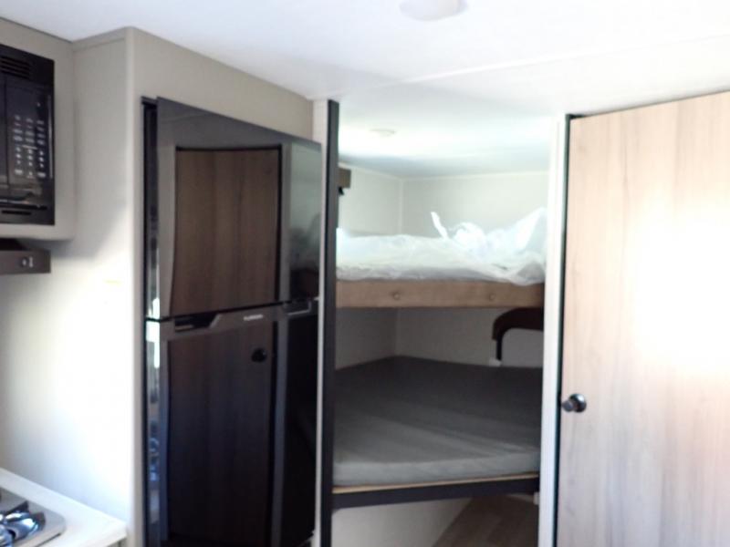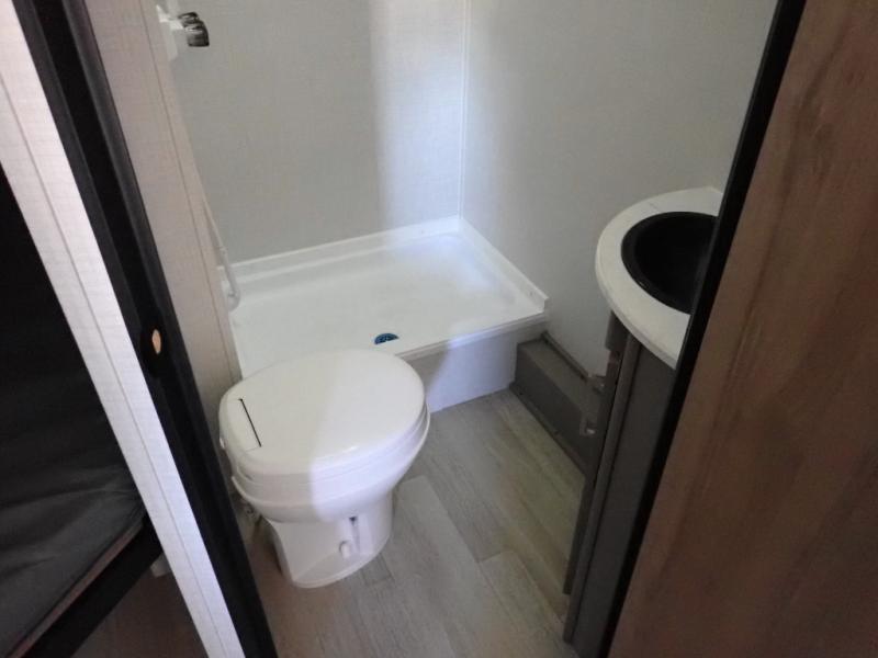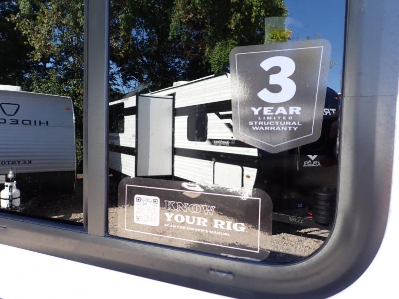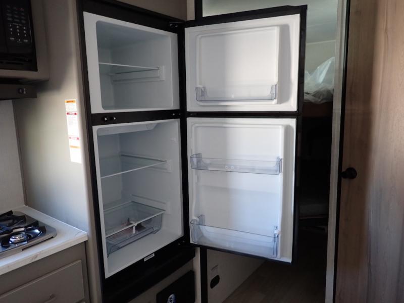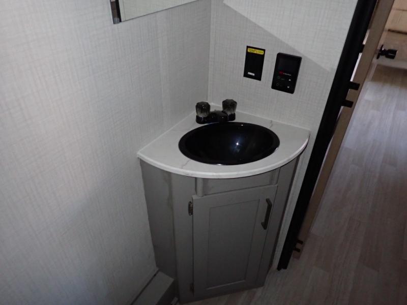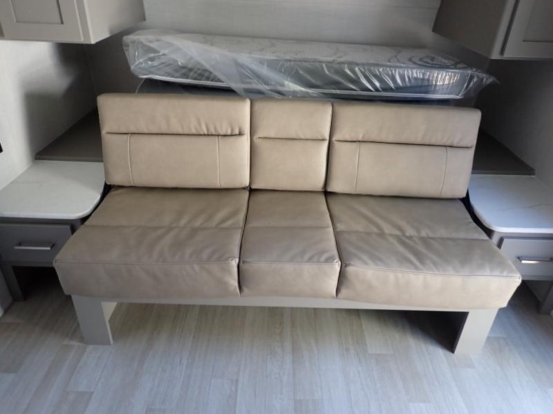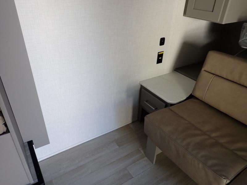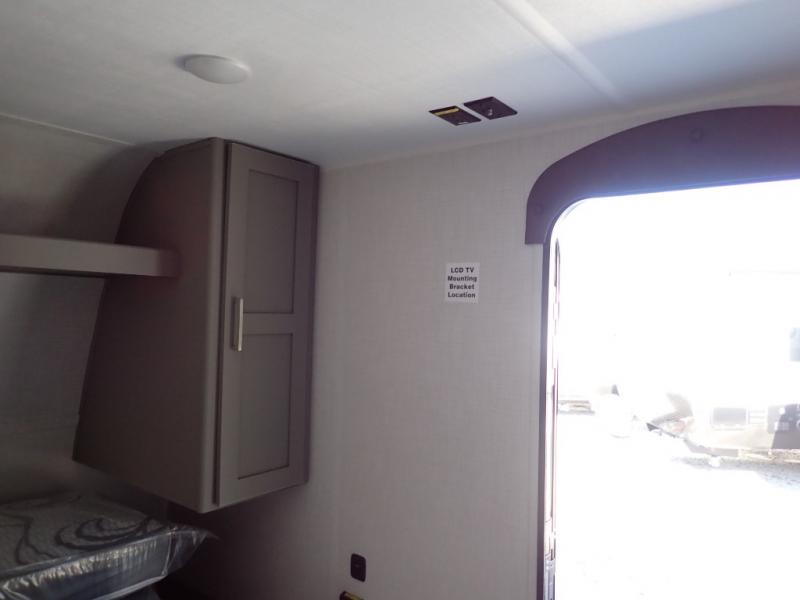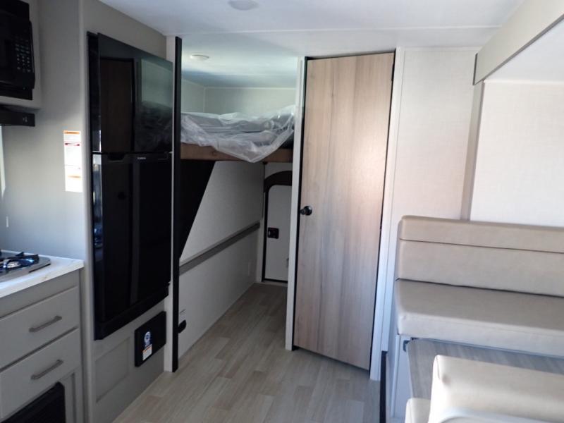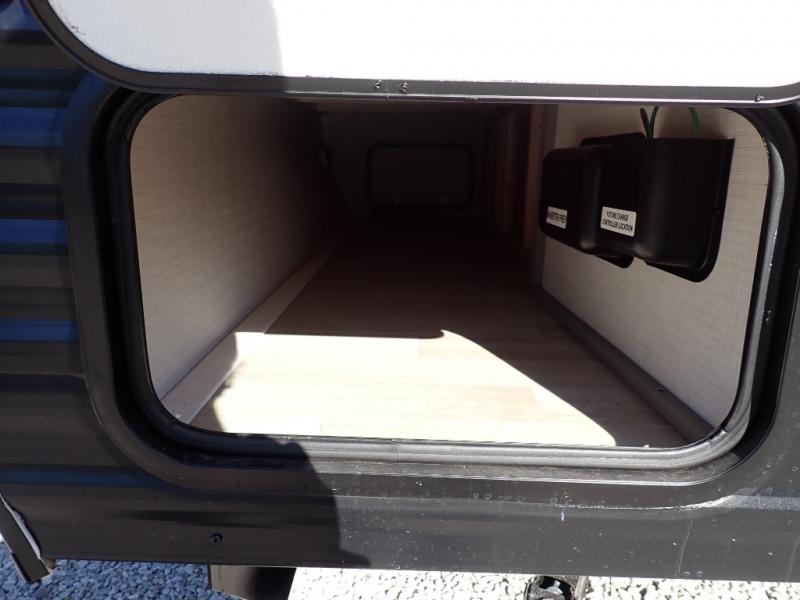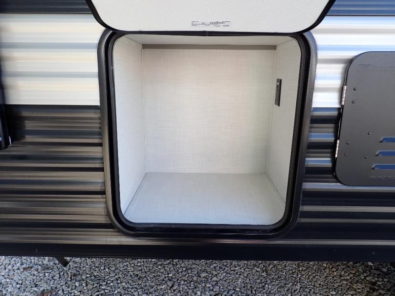 You will love how versatile this travel trailer is with its front Murphy bed that has a queen bed to lay your head on at night, folds down into a sofa, and even has storage underneath it! There is a set of double bunk beds in the rear corner and a booth dinette slide with storage drawers to keep your games out of the way. There is also outside storage under the bunks where you can easily flip up the bottom bunk to unload everything! You can keep everyone well fed with the two burner cooktop and 7.7 cu. ft. refrigerator, and the 15' power awning outdoors will provide a place for you all to visit after dinner.