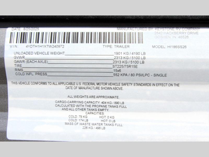 New 2026 Keystone RV Hideout Mini 186SS Travel Trailer