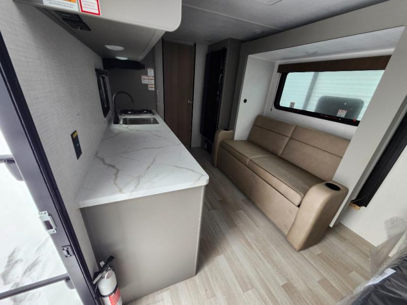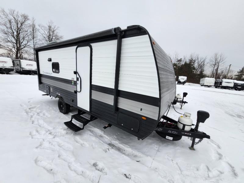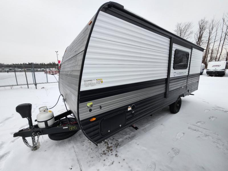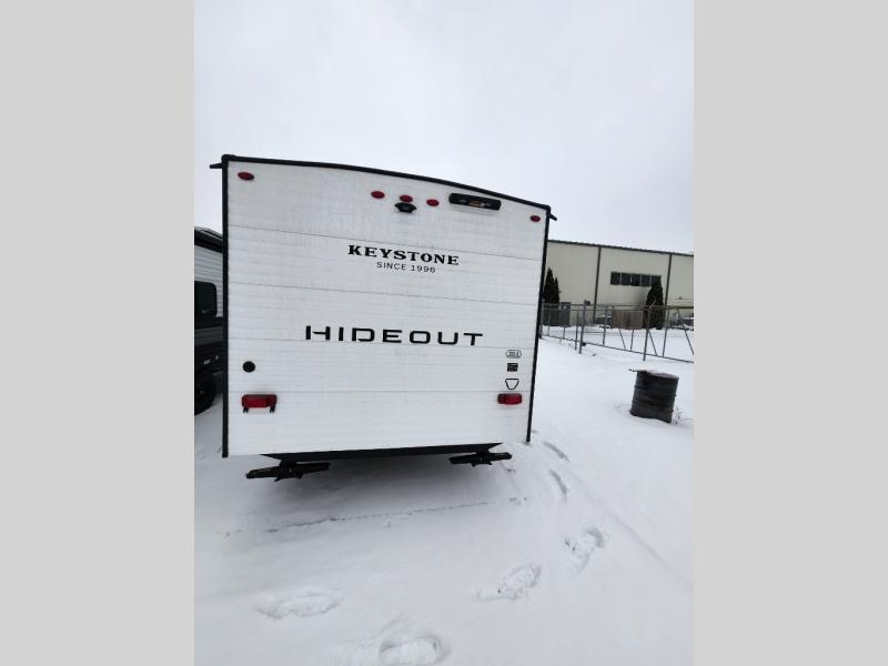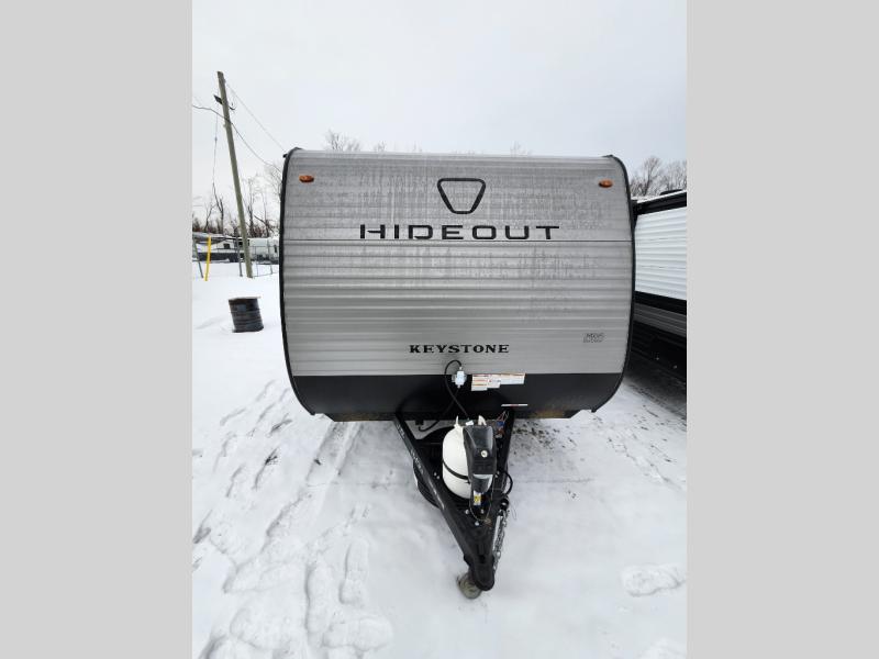 With any Hideout Mini travel trailer by Keystone, you will enjoy lightweight towing thanks to their single axle! The XL tinted safety glass windows are ultra durable, and the power awning will provide protection from the sun as you relax in your camp chairs outside. Each model includes blackout night shades, LED lighting, plus many more interior comforts. There is also a 20K BTU furnace to keep you comfortable, plus a tankless water heater for endless hot showers!
