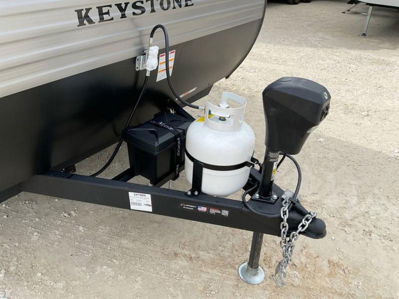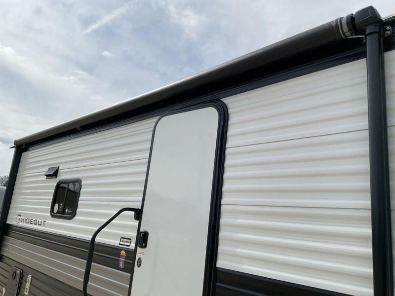 With any Hideout Mini travel trailer by Keystone, you will enjoy lightweight towing thanks to their single axle! The XL tinted safety glass windows are ultra durable, and the power awning will provide protection from the sun as you relax in your camp chairs outside. Each model includes blackout night shades, LED lighting, plus many more interior comforts. There is also a 20K BTU furnace to keep you comfortable, plus a tankless water heater for endless hot showers!