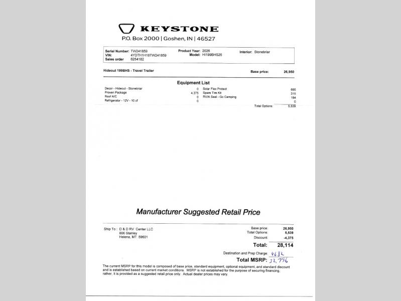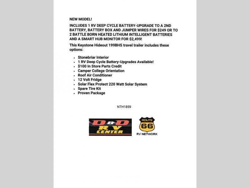 This Keystone Hideout 199BHS travel trailer includes these options: