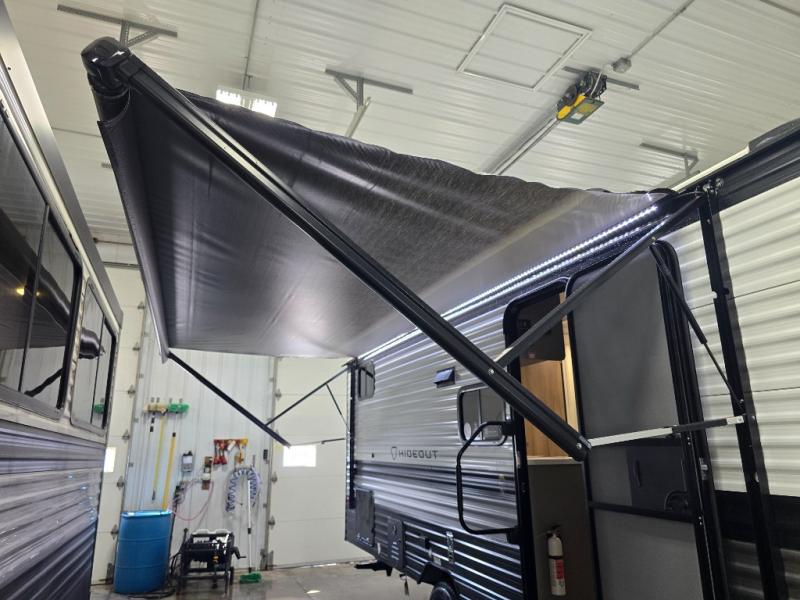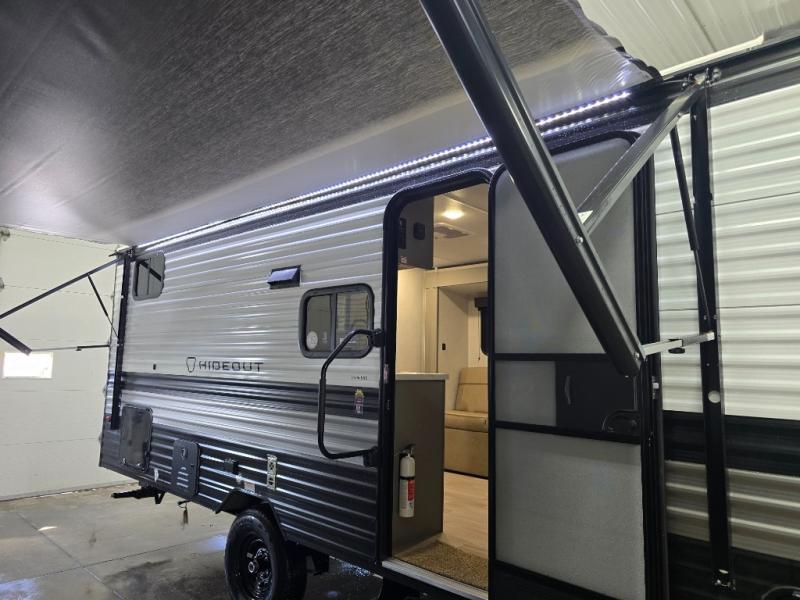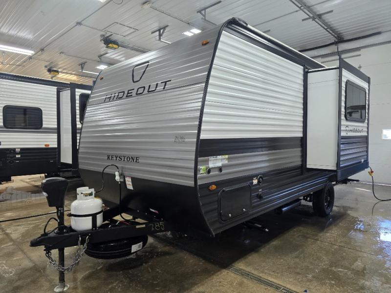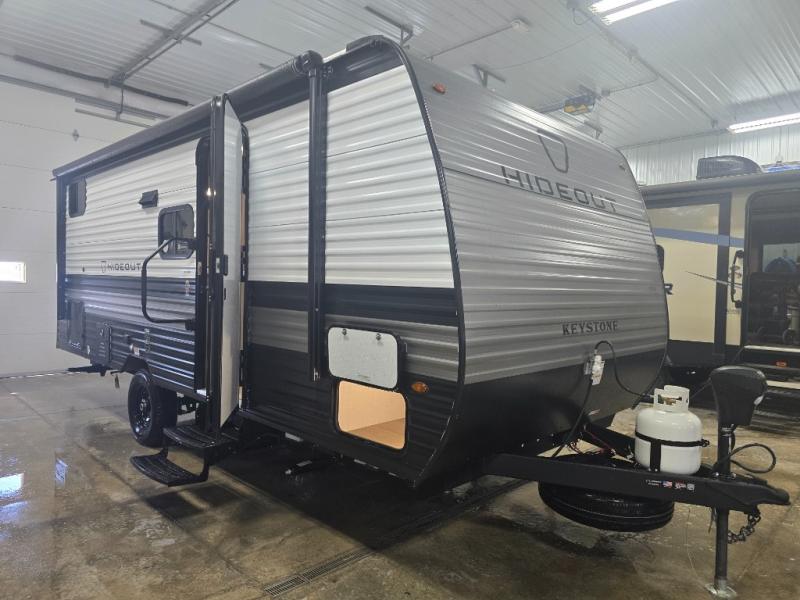 With any Hideout Mini travel trailer by Keystone, you will enjoy lightweight towing thanks to their single axle! The XL tinted safety glass windows are ultra durable, and the power awning will provide protection from the sun as you relax in your camp chairs outside. Each model includes blackout night shades, LED lighting, plus many more interior comforts. There is also a 20K BTU furnace to keep you comfortable, plus a tankless water heater for endless hot showers!