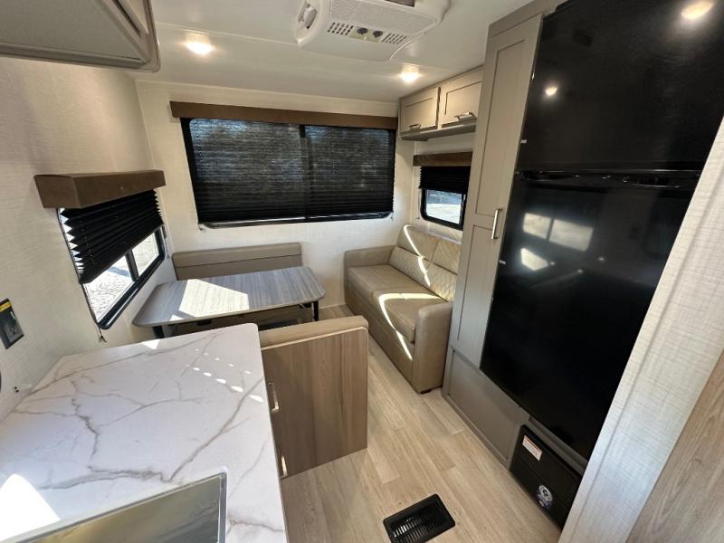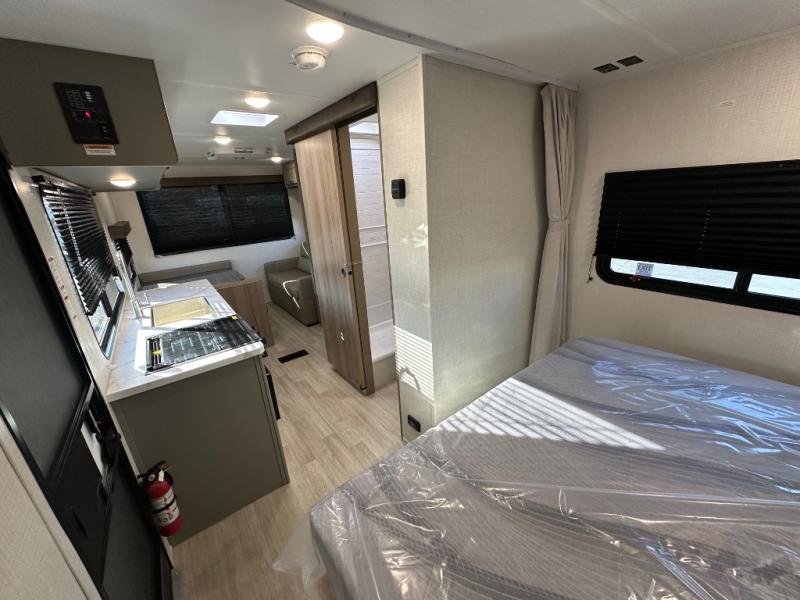 This is the perfect starter travel trailer since it includes everything you need while you're away from home. You'll enjoy the queen bed up front with underbed storage and nightstands for your things, plus a full bath on board so you won't have to use the camp's facilities. This model includes a cooktop that will allow you to cook meals each day, and there is a pantry and a 10 cu. ft. 12V refrigerator for food storage! A booth dinette in the back provides a place to dine and the sofa will be perfect to relax on after a day outdoors. And these pieces of furniture can double as your guests sleeping space at night!