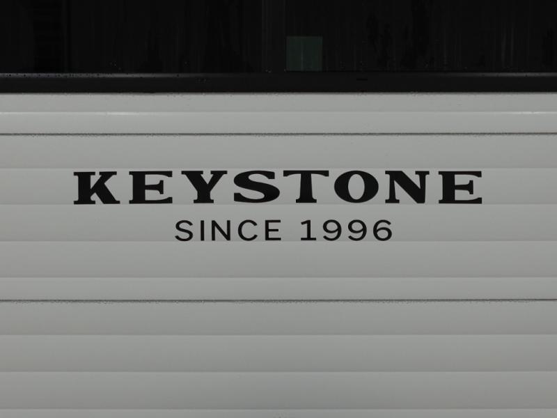 With any Hideout Sport travel trailer by Keystone you will enjoy simplified camping solutions that won't break the bank! Each model is constructed with a durable AlphaPly TPO roof membrane, tinted safety glass windows, and an I-beam frame. There are power tongue jacks and heavy duty stabilizer jacks that will make it easier than ever to hitch up and go. An XL entry assist handle will also provide convenience, along with a power awning that will provide much wanted shade during the day. You will feel right at home inside with stylish decor, blackout night shades, and cozy bed with storage underneath!