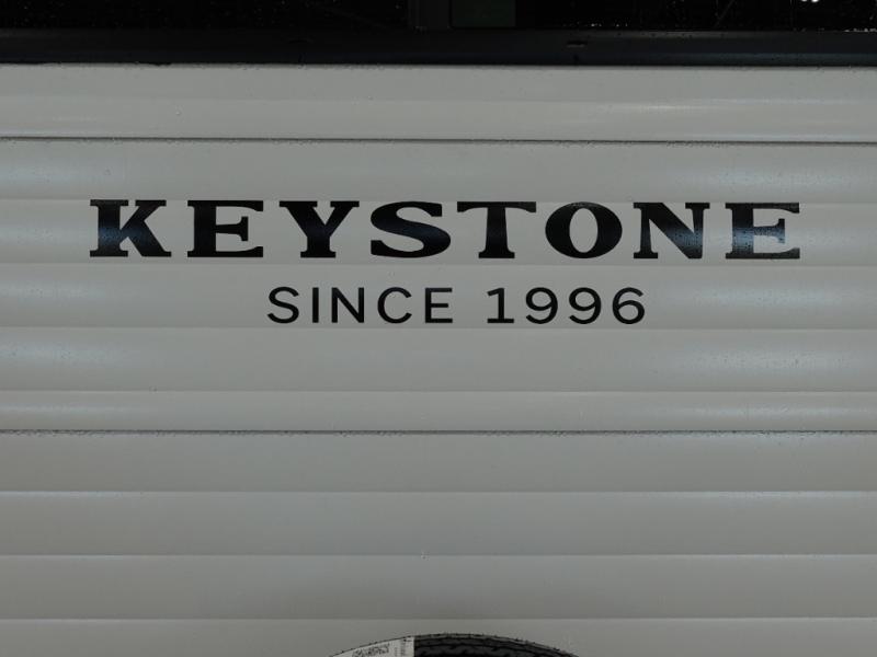 With any Hideout Sport travel trailer by Keystone you will enjoy simplified camping solutions that won't break the bank! Each model is constructed with a durable AlphaPly TPO roof membrane, tinted safety glass windows, and an I-beam frame. There are power tongue jacks and heavy duty stabilizer jacks that will make it easier than ever to hitch up and go. An XL entry assist handle will also provide convenience, along with a power awning that will provide much wanted shade during the day. You will feel right at home inside with stylish decor, blackout night shades, and cozy bed with storage underneath!