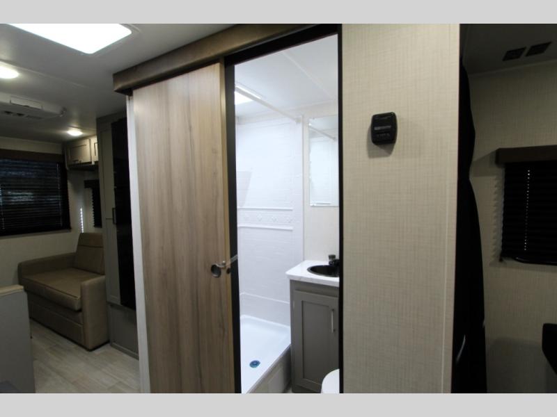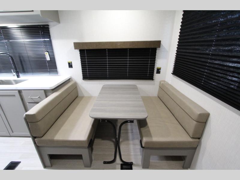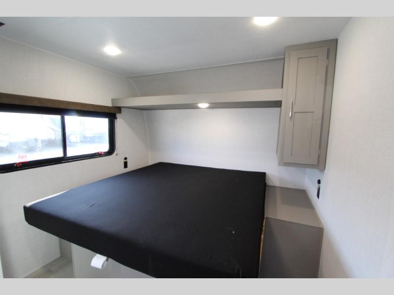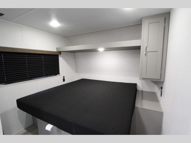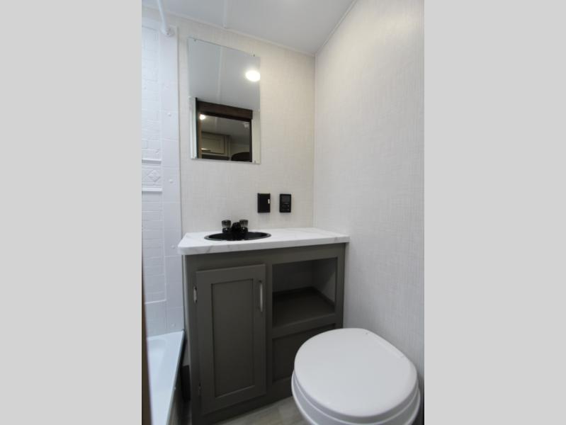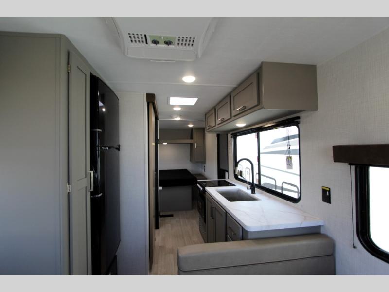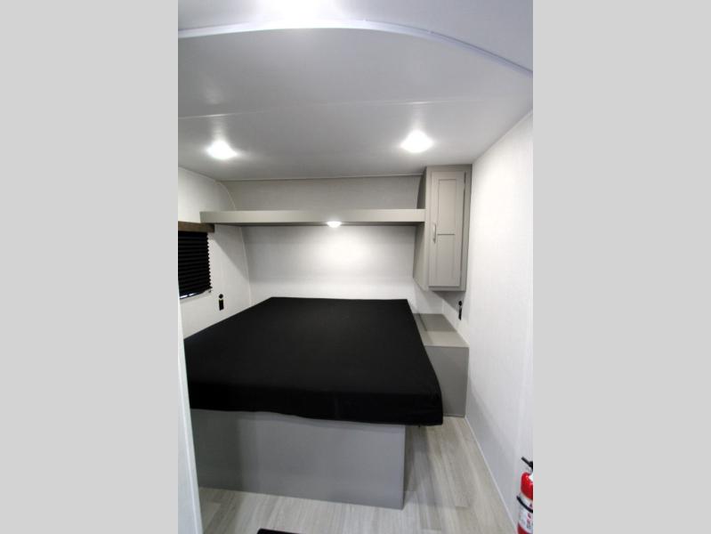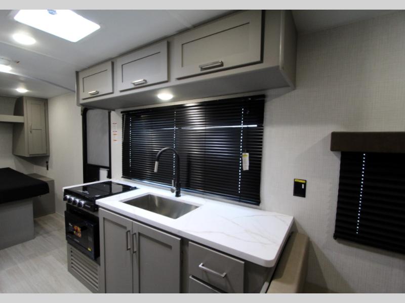 This is the perfect starter travel trailer since it includes everything you need while you're away from home. You'll enjoy the queen bed up front with underbed storage and nightstands for your things, plus a full bath on board so you won't have to use the camp's facilities. This model includes a cooktop that will allow you to cook meals each day, and there is a pantry and a 10 cu. ft. 12V refrigerator for food storage! A booth dinette in the back provides a place to dine and the sofa will be perfect to relax on after a day outdoors. And these pieces of furniture can double as your guests sleeping space at night!