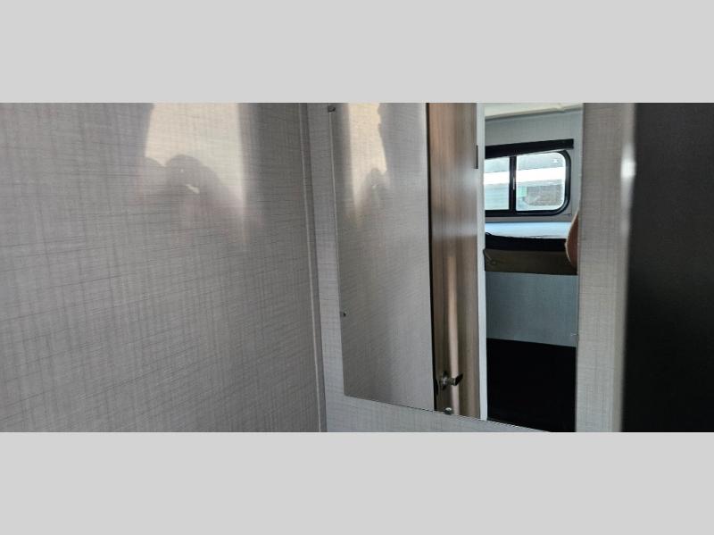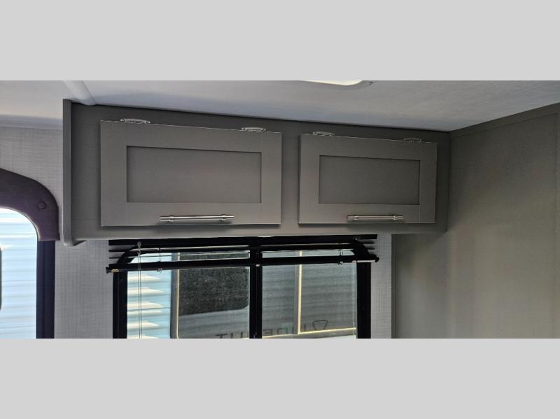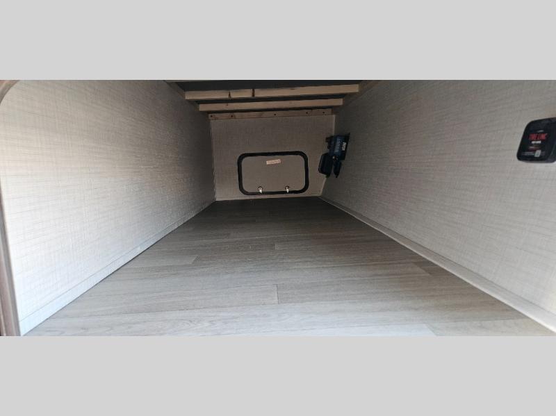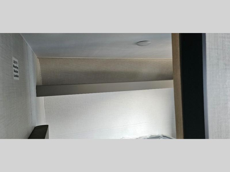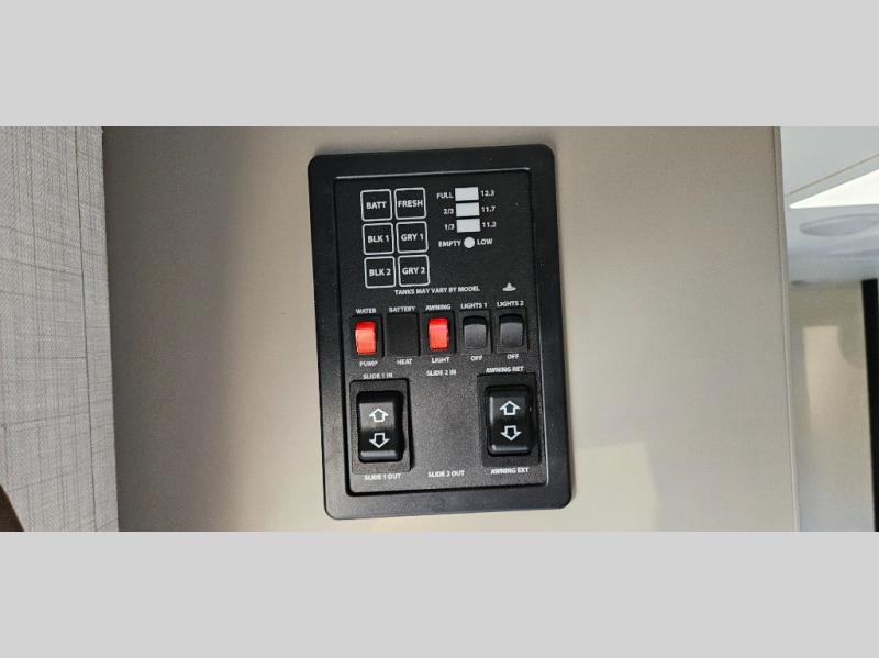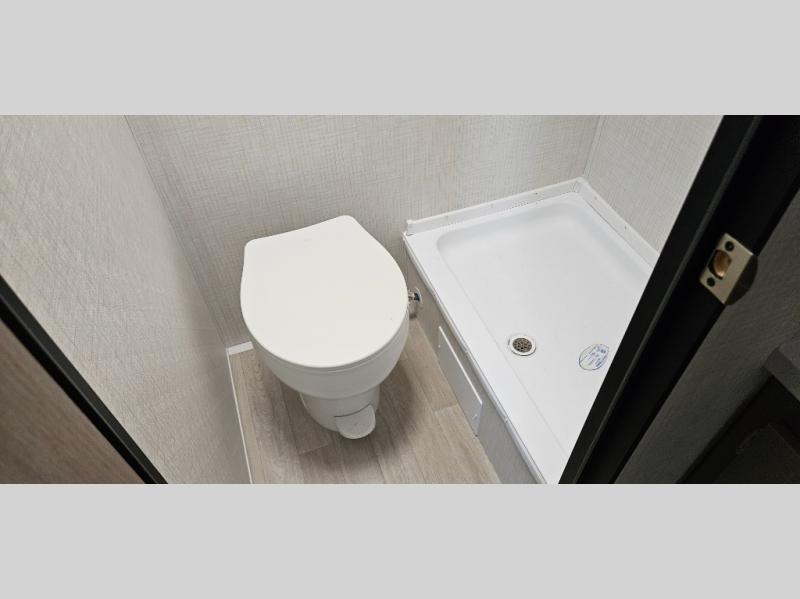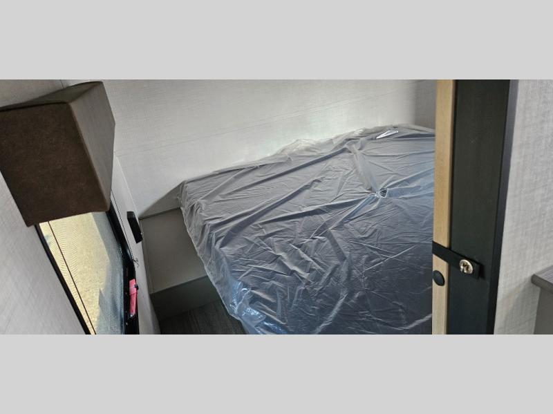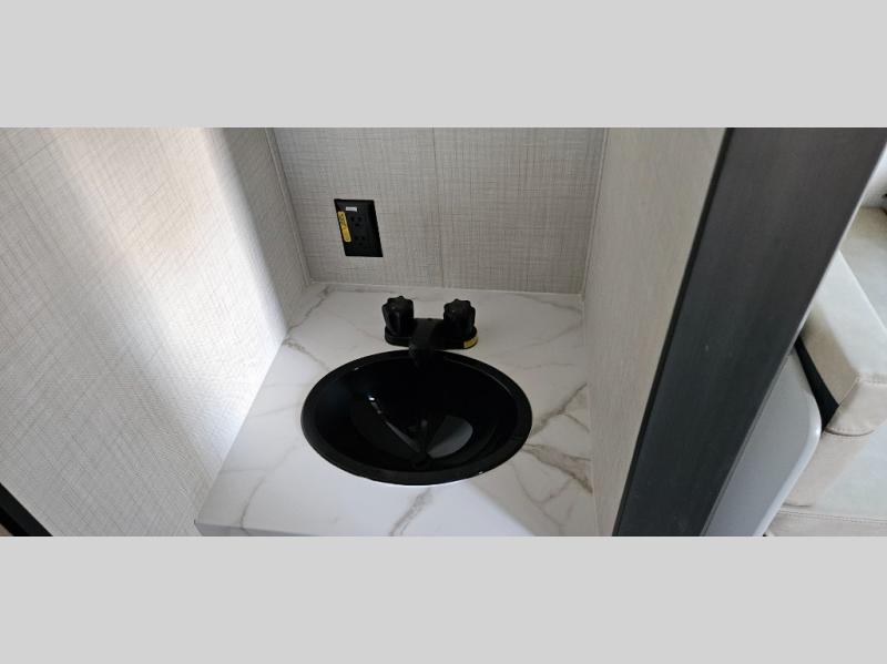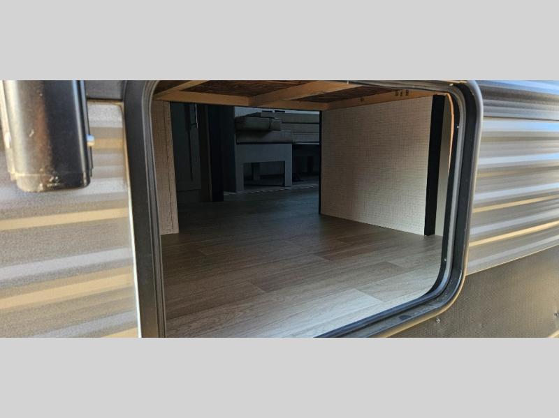 You're sure to make memories at the campground in this travel trailer! The little ones or your guests can claim the bunk beds to themselves, while you take the walk-around RV queen bed up front. There are dual nightstands here plus an overhead cabinet to keep your things out of the way. Once dinner has been made on the cooktop, you can dine at the booth dinette or take your plate outdoors to sit under the 12' power awning. This unit also incudes a private bath with a shower and toilet, with the sink just outside the room so two people can freshen up at once!