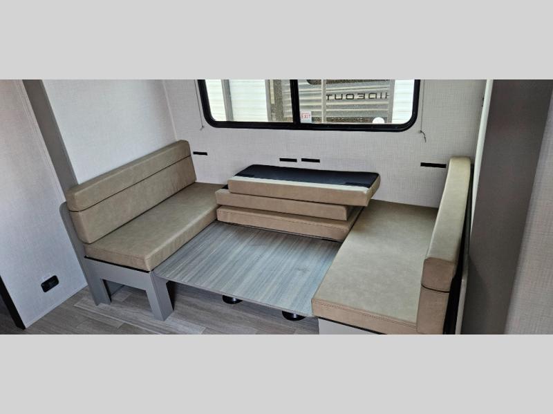 With any Hideout Sport travel trailer by Keystone you will enjoy simplified camping solutions that won't break the bank! Each model is constructed with a durable AlphaPly TPO roof membrane, tinted safety glass windows, and an I-beam frame. There are power tongue jacks and heavy duty stabilizer jacks that will make it easier than ever to hitch up and go. An XL entry assist handle will also provide convenience, along with a power awning that will provide much wanted shade during the day. You will feel right at home inside with stylish decor, blackout night shades, and cozy bed with storage underneath!