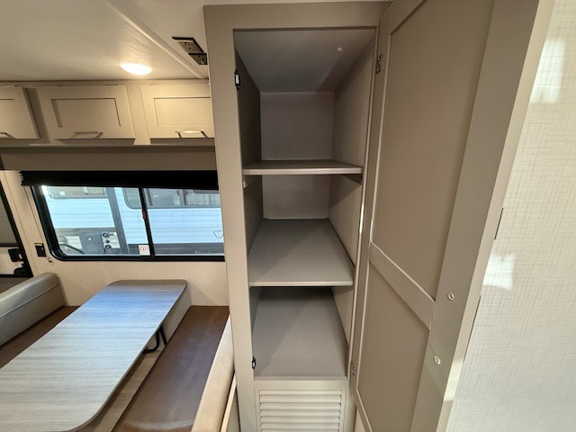 Trips to the lake are made easy in this spacious travel trailer for four to five. You can wake up feeling refreshed each day after sleeping on the queen bed, and there is a privacy curtain here if you have guests staying over. They can convert the sofa and booth dinette back into seating spaces while the chef of your group makes breakfast on the three burner range. There is also a spacious pantry and 10 cu. ft. 12V refrigerator to keep food stocked. The full bath will allow you to clean up without having to leave your camper; how convenient!