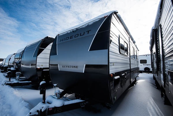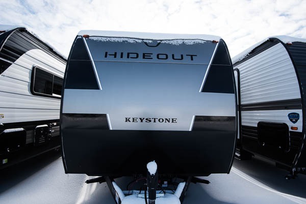 With any Hideout Sport travel trailer by Keystone you will enjoy simplified camping solutions that won't break the bank! Each model is constructed with a durable AlphaPly TPO roof membrane tinted safety glass windows, and an I-beam frame. There are power tongue jacks and heavy duty stabilizer jacks that will make it easier than ever to hitch up and go. An XL entry assist handle will also provide convenience, along with a power awning that will provide much wanted shade during the day. You will feel right at home inside with stylish decor, blackout night shades, and cozy bed with storage underneath!