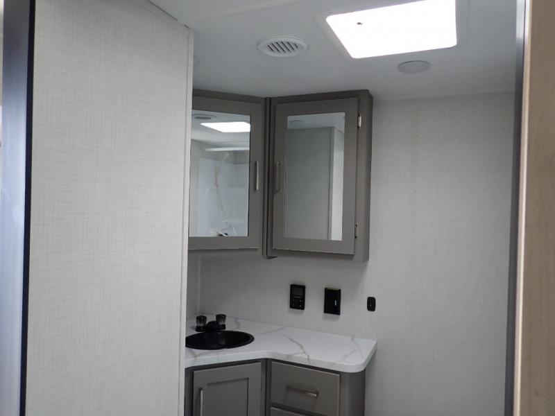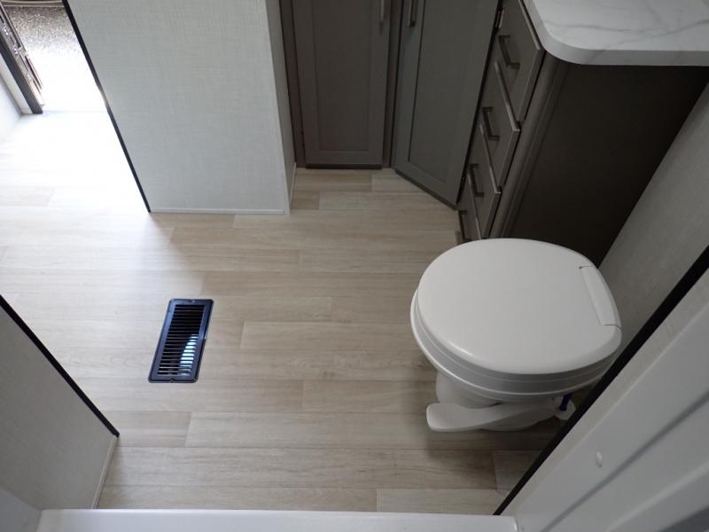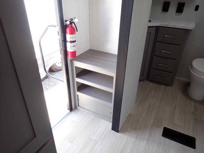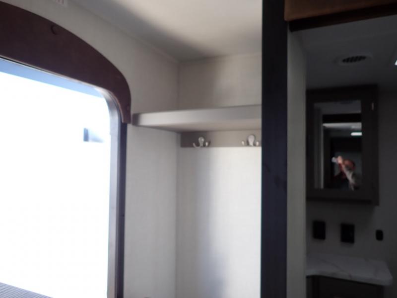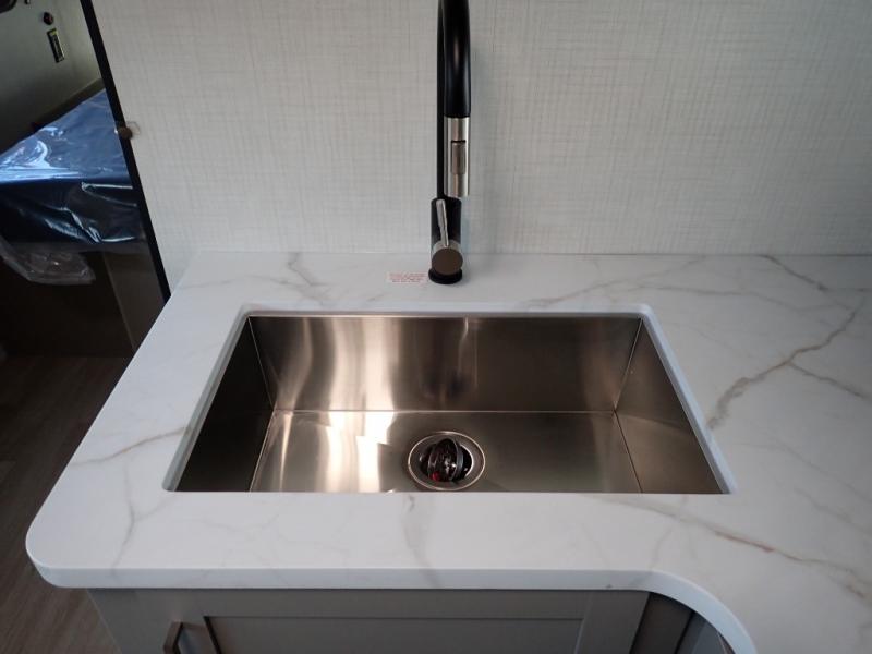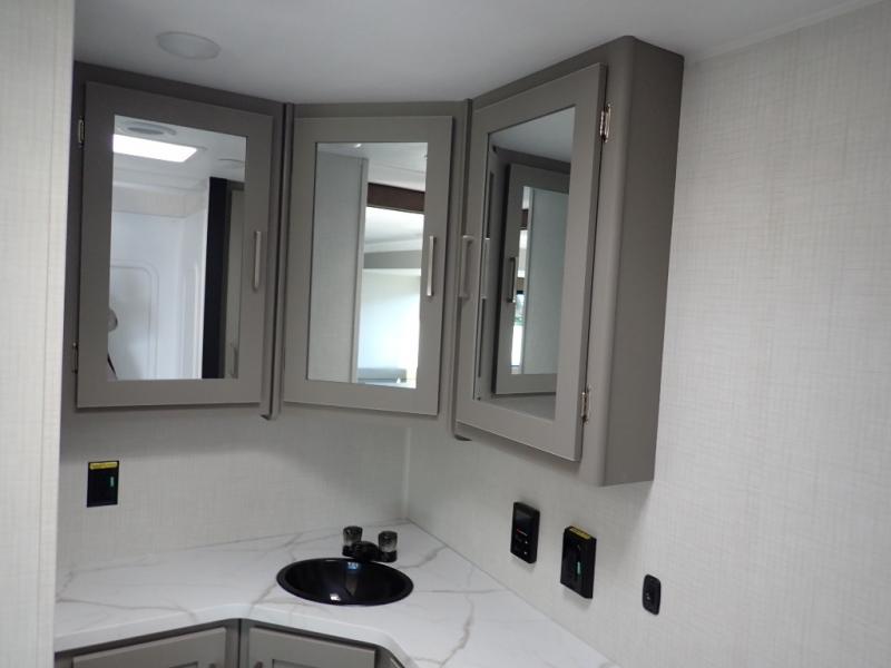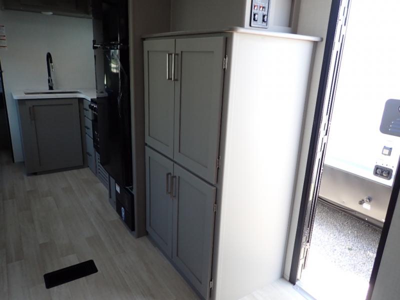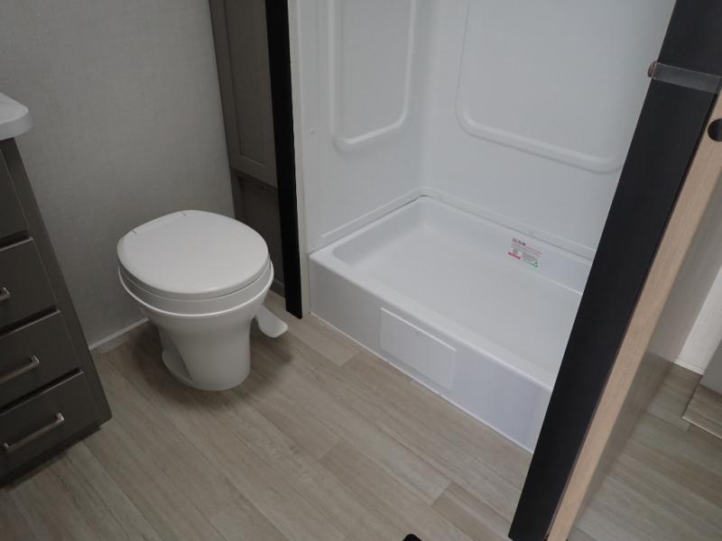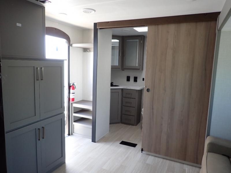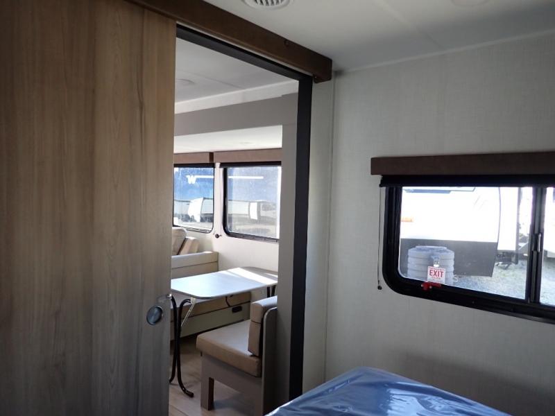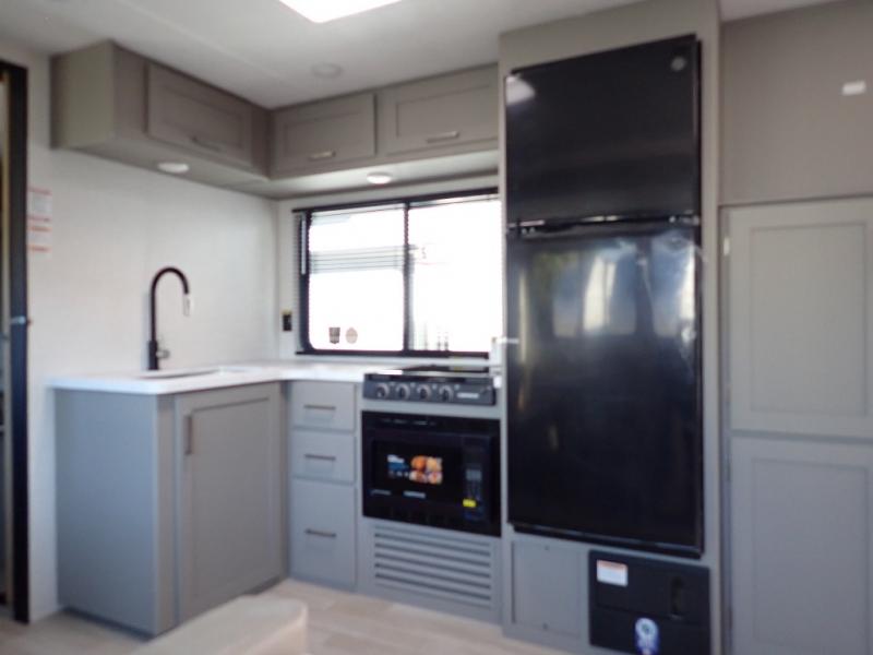 You'll feel right at home wherever you decide to camp in this travel trailer. The large slide out in the combined kitchen and living area gives your crew plenty of space to move about, plus there is a booth dinette and sofa for comfy seating and sleeping spaces. A full kitchen, compete with three burner cooktop and 10 cu. ft. 12V refrigerator will let you cook and store food for the whole week. Head to the full rear bath that includes a spacious vanity, a shower, toilet, and linen closet for clean towels. And when you're ready to catch some zzz's, the queen bed in the front private bedroom is sure to bring comfort!