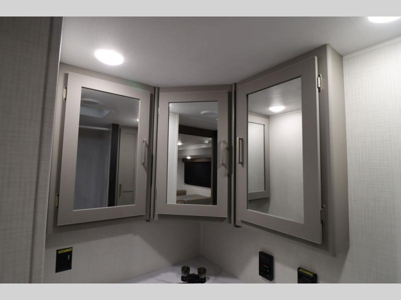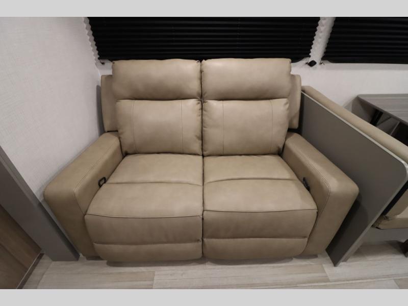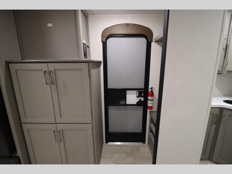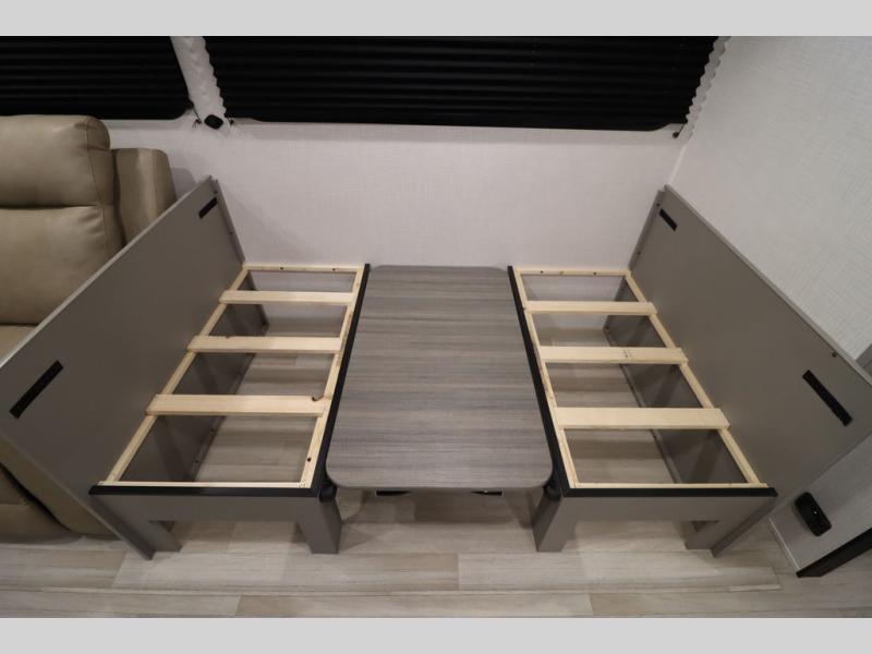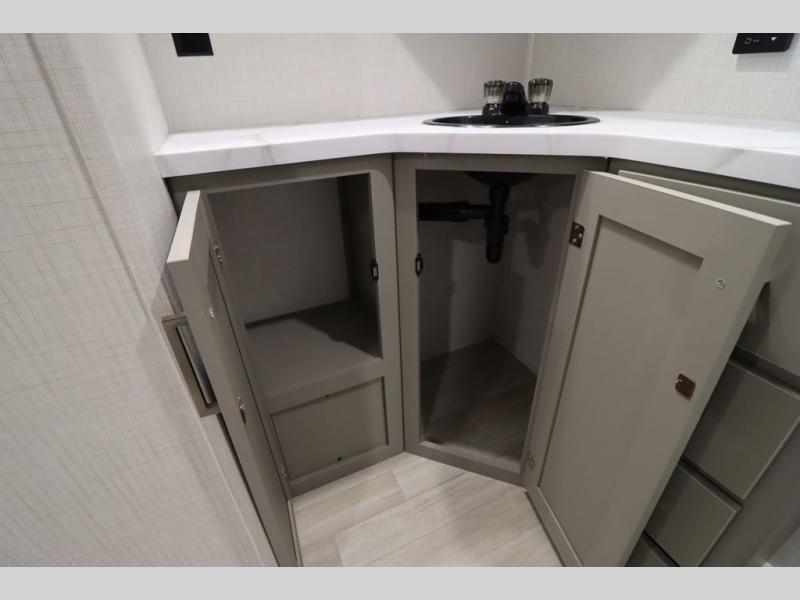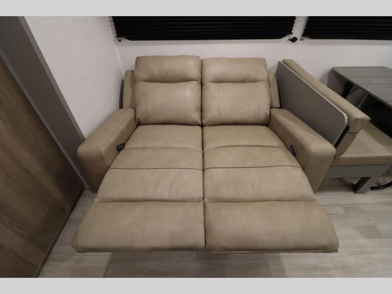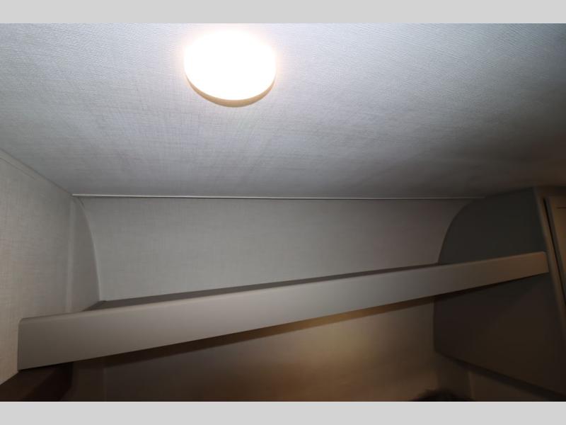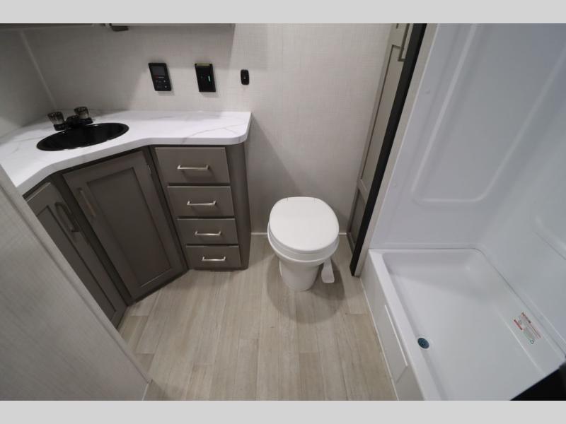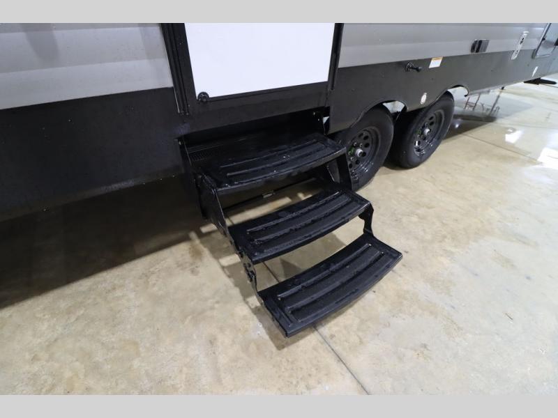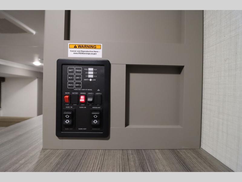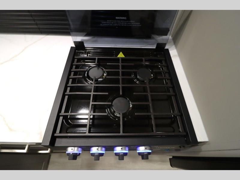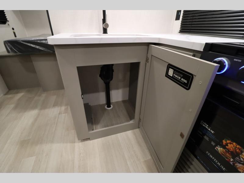 You'll feel right at home wherever you decide to camp in this travel trailer. The large slide out in the combined kitchen and living area gives your crew plenty of space to move about, plus there is a booth dinette and sofa for comfy seating and sleeping spaces. A full kitchen, compete with three burner cooktop and 10 cu. ft. 12V refrigerator will let you cook and store food for the whole week. Head to the full rear bath that includes a spacious vanity, a shower, toilet, and linen closet for clean towels. And when you're ready to catch some zzz's, the queen bed in the front private bedroom is sure to bring comfort!