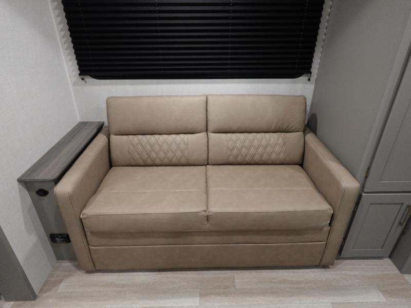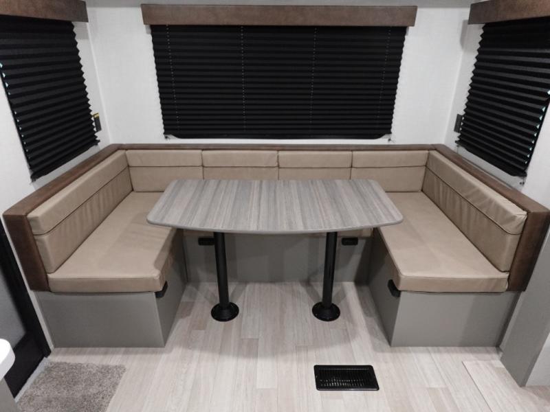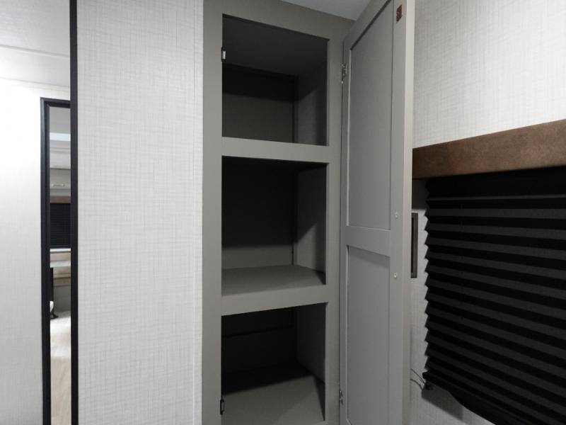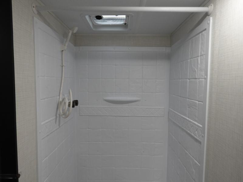 Trips to the lake just got easier in this dual entry travel trailer. You can enter in through the rear living area or the front master bedroom, and a queen bed will be calling your name after a tiring day. Don't forget to clean up in the walk-through bath before heading to bed! The chef of your group can make breakfast on the three burner gas cooktop, while the others set plates around the rear U-shaped dinette. There is also a sofa slide out for additional seating spaces, and both of these pieces of furniture will double as your guests' sleeping space at night. After breakfast is cleaned up, grab your fishing poles from the exterior pass-thru storage and head down to the water!
