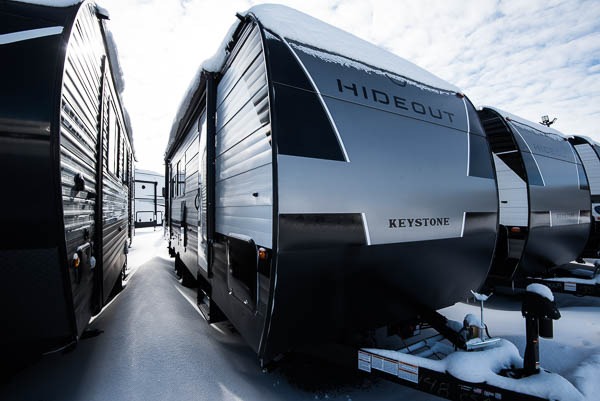 With any Hideout Sport travel trailer by Keystone you will enjoy simplified camping solutions that won't break the bank! Each model is constructed with a durable AlphaPly TPO roof membrane, tinted safety glass windows, and an I-beam frame. There are power tongue jacks and heavy duty stabilizer jacks that will make it easier than ever to hitch up and go. An XL entry assist handle will also provide convenience, along with a power awning that will provide much wanted shade during the day. You will feel right at home inside with stylish decor, blackout night shades, and cozy bed with storage underneath!