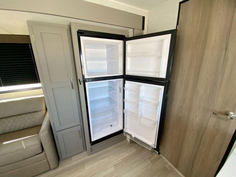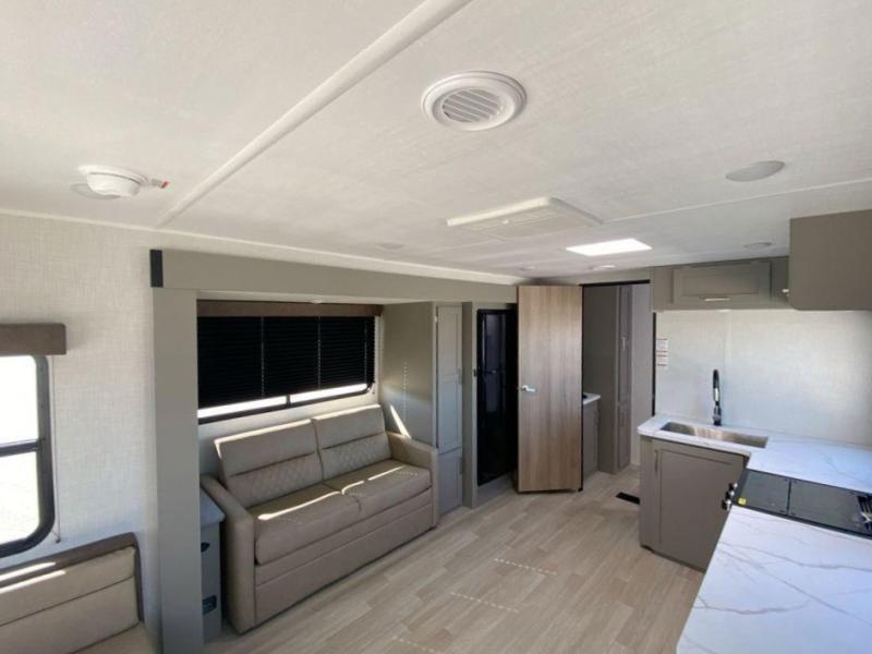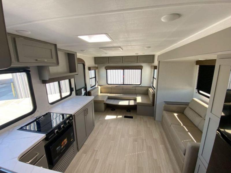 This practical layout makes traveling with family or friends effortless. The rear living area provides plenty of seating and sleeping options, while the walk-through bath adds everyday convenience. Whether you are enjoying breakfast before a day on the water or winding down after sunset, this trailer delivers comfort without complication.