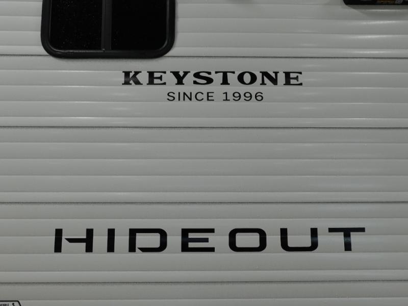 With any Hideout Sport travel trailer by Keystone you will enjoy simplified camping solutions that won't break the bank! Each model is constructed with a durable AlphaPly TPO roof membrane tinted safety glass windows, and an I-beam frame. There are power tongue jacks and heavy duty stabilizer jacks that will make it easier than ever to hitch up and go. An XL entry assist handle will also provide convenience, along with a power awning that will provide much wanted shade during the day. You will feel right at home with stylish decor, blackout night shades, and cozy bed with storage underneath!