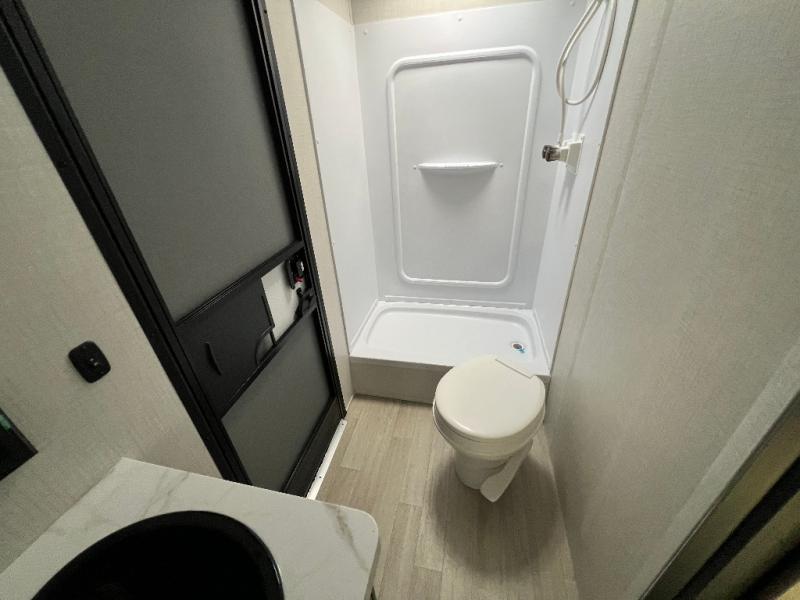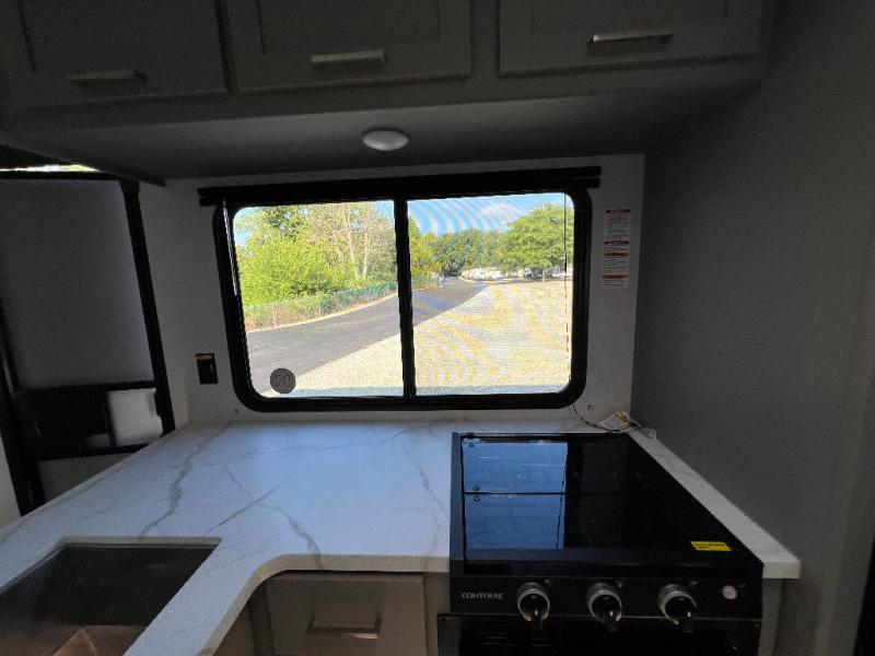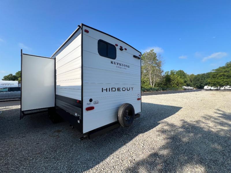 With any Hideout Sport travel trailer by Keystone you will enjoy simplified camping solutions that won't break the bank! Each model is constructed with a durable AlphaPly TPO roof membrane tinted safety glass windows, and an I-beam frame. There are power tongue jacks and heavy duty stabilizer jacks that will make it easier than ever to hitch up and go. An XL entry assist handle will also provide convenience, along with a power awning that will provide much wanted shade during the day. You will feel right at home with stylish decor, blackout night shades, and cozy bed with storage underneath!