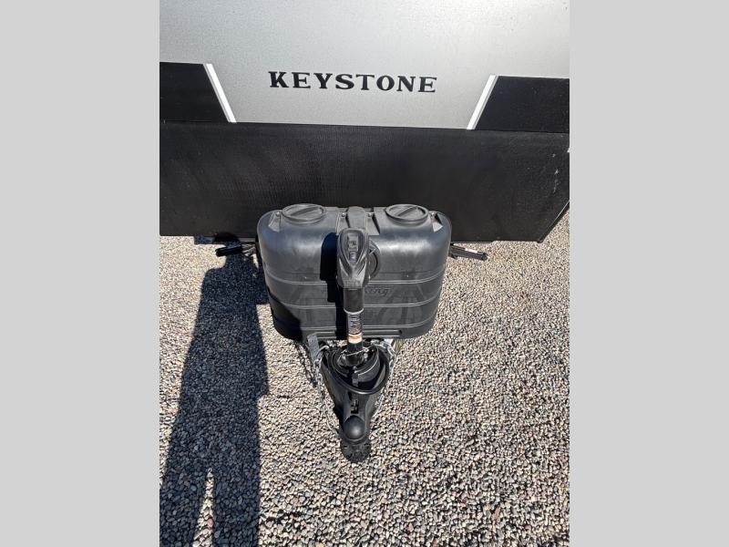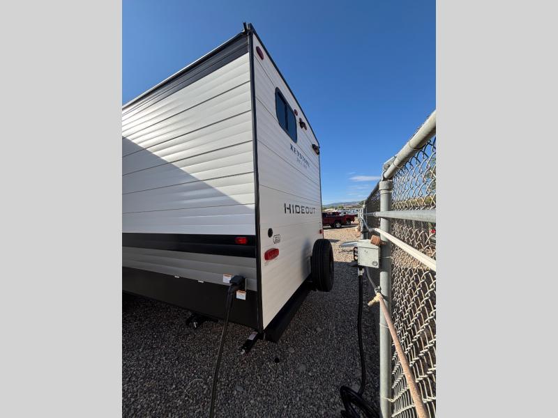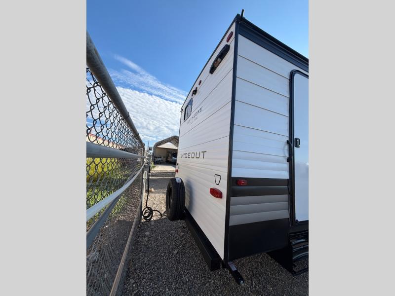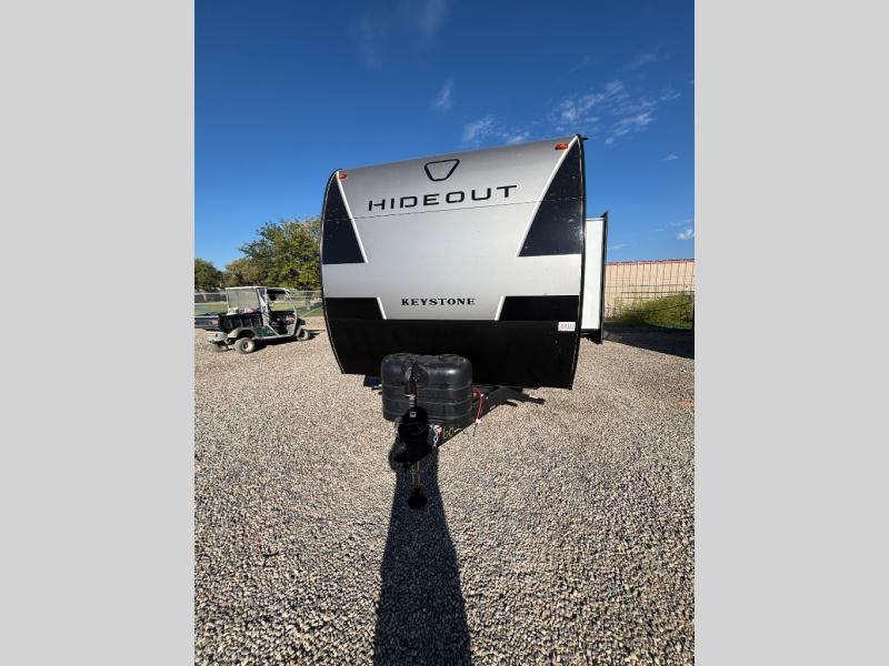 With any Hideout Sport travel trailer by Keystone you will enjoy simplified camping solutions that won't break the bank! Each model is constructed with a durable AlphaPly TPO roof membrane tinted safety glass windows, and an I-beam frame. There are power tongue jacks and heavy duty stabilizer jacks that will make it easier than ever to hitch up and go. An XL entry assist handle will also provide convenience, along with a power awning that will provide much wanted shade during the day. You will feel right at home with stylish decor, blackout night shades, and cozy bed with storage underneath!