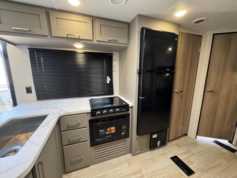 With any Hideout Sport travel trailer by Keystone you will enjoy simplified camping solutions that won't break the bank! Each model is constructed with a durable AlphaPly TPO roof membrane tinted safety glass windows, and an I-beam frame. There are power tongue jacks and heavy duty stabilizer jacks that will make it easier than ever to hitch up and go. An XL entry assist handle will also provide convenience, along with a power awning that will provide much wanted shade during the day. You will feel right at home with stylish decor, blackout night shades, and cozy bed with storage underneath!