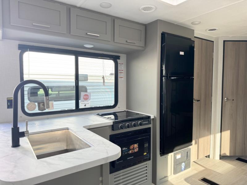 With any Hideout Sport travel trailer by Keystone you will enjoy simplified camping solutions that won't break the bank! Each model is constructed with a durable AlphaPly TPO roof membrane tinted safety glass windows, and an I-beam frame. There are power tongue jacks and heavy duty stabilizer jacks that will make it easier than ever to hitch up and go. An XL entry assist handle will also provide convenience, along with a power awning that will provide much wanted shade during the day. You will feel right at home with stylish decor, blackout night shades, and cozy bed with storage underneath!