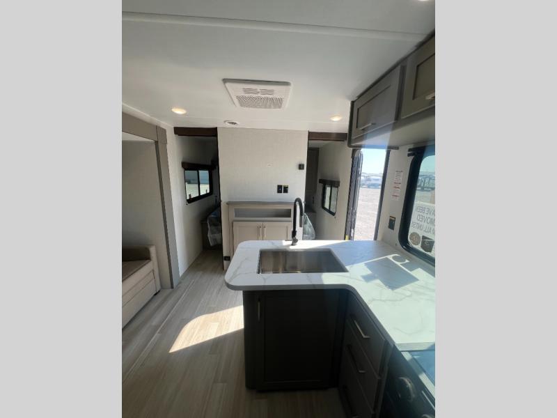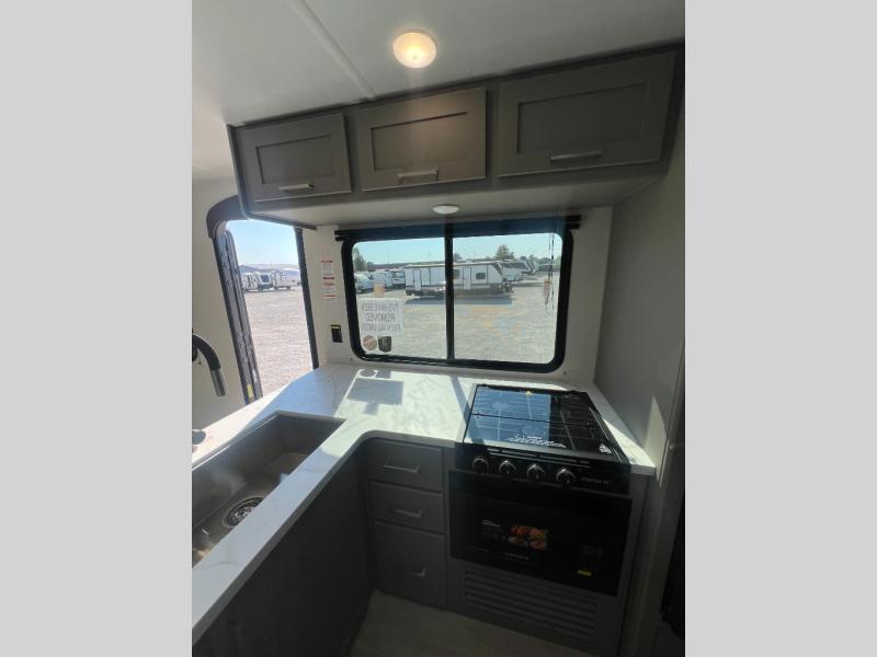 With any Hideout Sport travel trailer by Keystone you will enjoy simplified camping solutions that won't break the bank! Each model is constructed with a durable AlphaPly TPO roof membrane tinted safety glass windows, and an I-beam frame. There are power tongue jacks and heavy duty stabilizer jacks that will make it easier than ever to hitch up and go. An XL entry assist handle will also provide convenience, along with a power awning that will provide much wanted shade during the day. You will feel right at home with stylish decor, blackout night shades, and cozy bed with storage underneath!