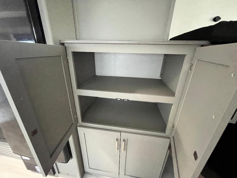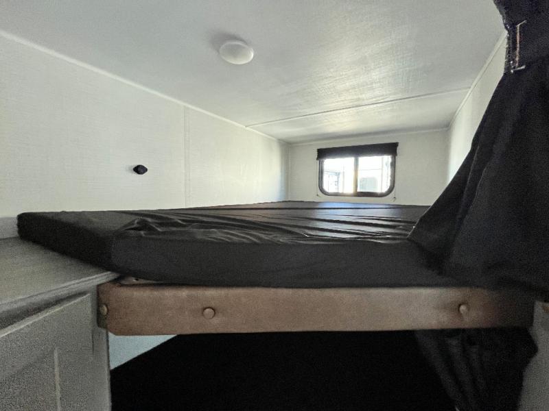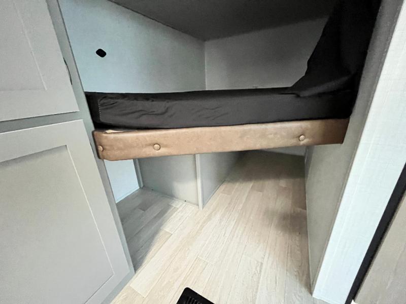 A large slide, front private bedroom, and double-size bunks make this Hideout Sport Double Axle the ultimate travel trailer! You will enjoy a walk-around queen bed in the bedroom plus dual closets and nightstands for your things. The full bath is towards the back and beside the bunks for easy nighttime use, and there is a pass-through storage outside for your gear. Head to the kitchen to prepare lunch on the cooktop, then dine at the U-shaped dinette and sofa within the large slide. If the weather is nice, you might just want to cook outdoors on the outside kitchen under the 18' power awning!