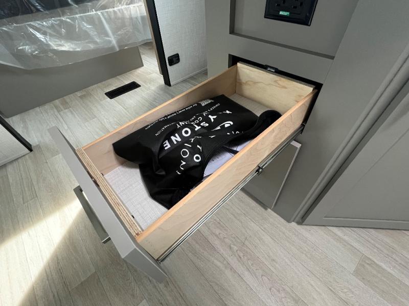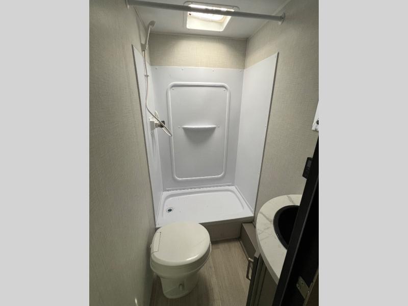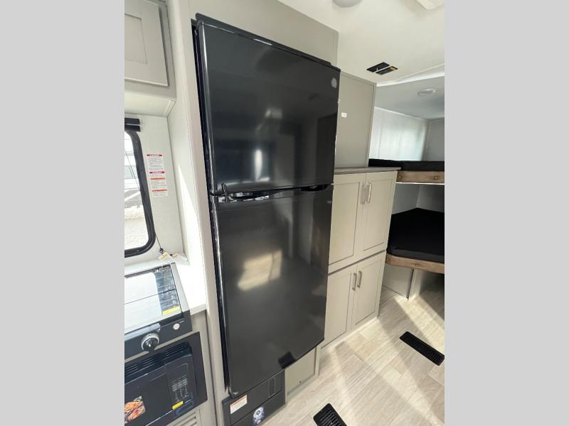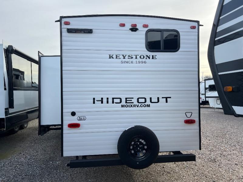 With any Hideout Sport travel trailer by Keystone you will enjoy simplified camping solutions that won't break the bank! Each model is constructed with a durable AlphaPly TPO roof membrane tinted safety glass windows, and an I-beam frame. There are power tongue jacks and heavy duty stabilizer jacks that will make it easier than ever to hitch up and go. An XL entry assist handle will also provide convenience, along with a power awning that will provide much wanted shade during the day. You will feel right at home with stylish decor, blackout night shades, and cozy bed with storage underneath!