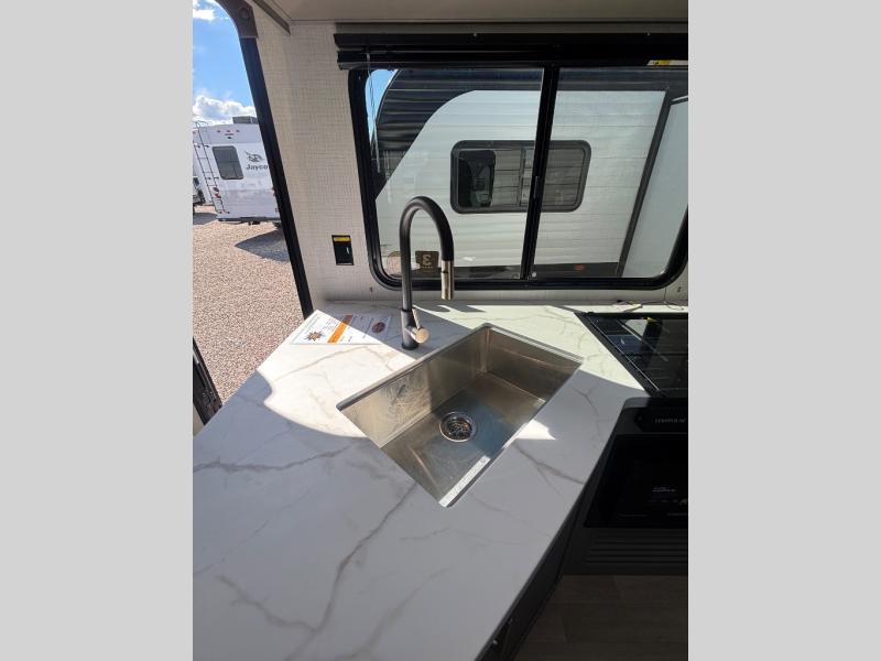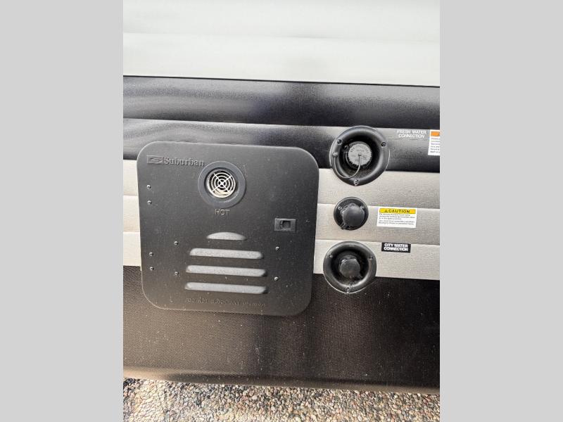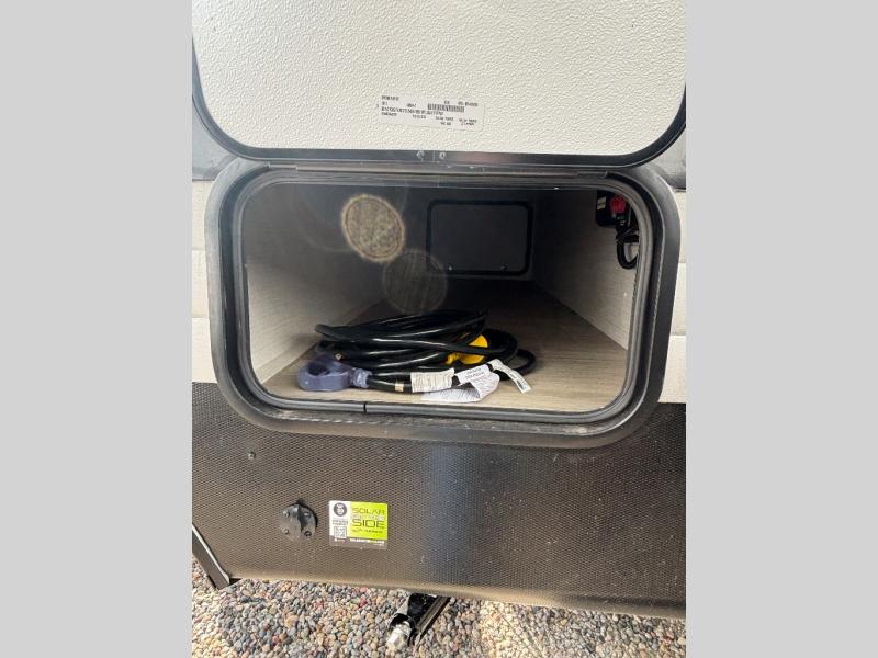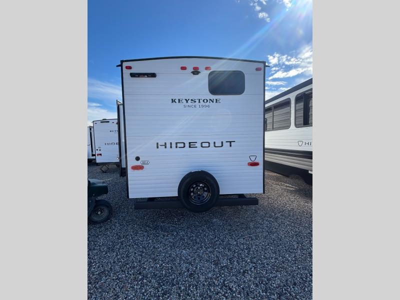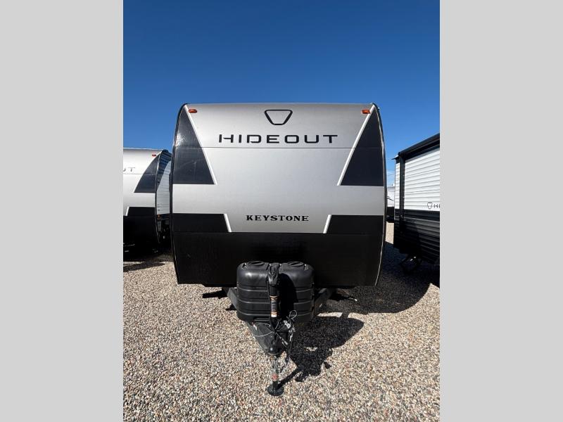 With any Hideout Sport travel trailer by Keystone you will enjoy simplified camping solutions that won't break the bank! Each model is constructed with a durable AlphaPly TPO roof membrane tinted safety glass windows, and an I-beam frame. There are power tongue jacks and heavy duty stabilizer jacks that will make it easier than ever to hitch up and go. An XL entry assist handle will also provide convenience, along with a power awning that will provide much wanted shade during the day. You will feel right at home with stylish decor, blackout night shades, and cozy bed with storage underneath!
