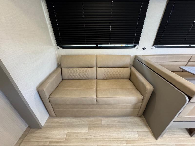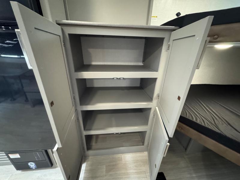 A large slide, front private bedroom, and double-size bunks make this Hideout Sport Double Axle the ultimate travel trailer! You will enjoy a walk-around queen bed in the bedroom plus dual closets and nightstands for your things. The full bath is towards the back and beside the bunks for easy nighttime use, and there is a pass-through storage outside for your gear. Head to the kitchen to prepare lunch on the cooktop, then dine at the U-shaped dinette and sofa within the large slide. If the weather is nice, you might just want to cook outdoors on the outside kitchen under the 18' power awning!