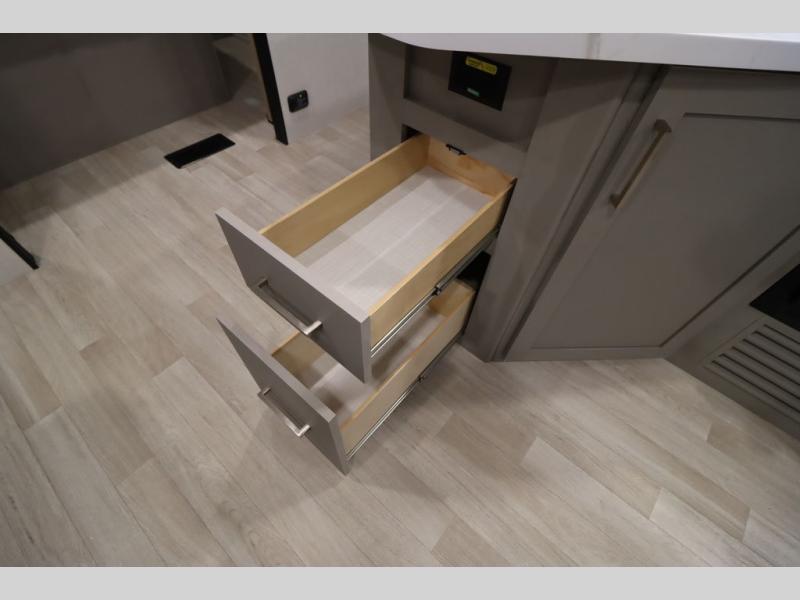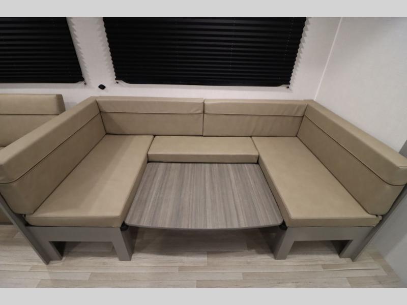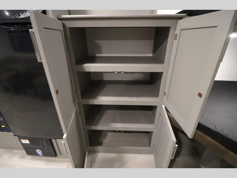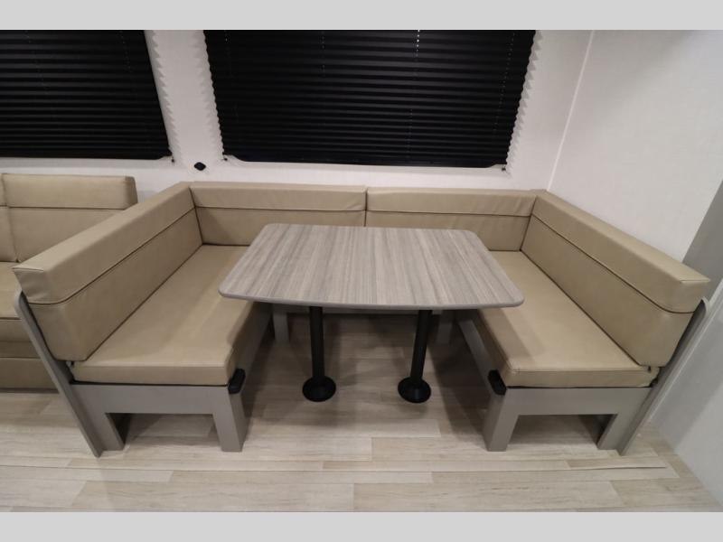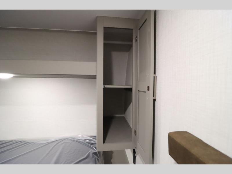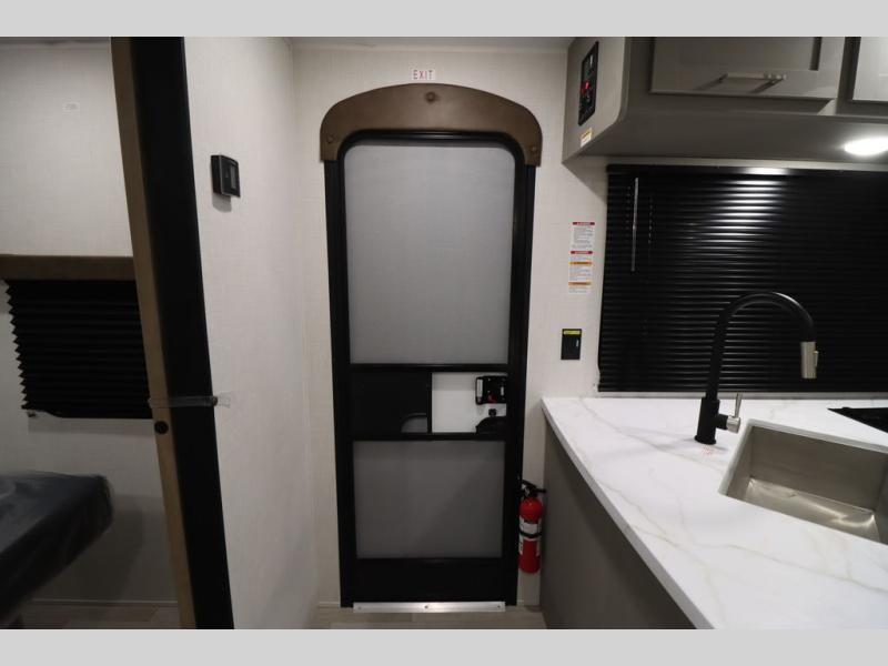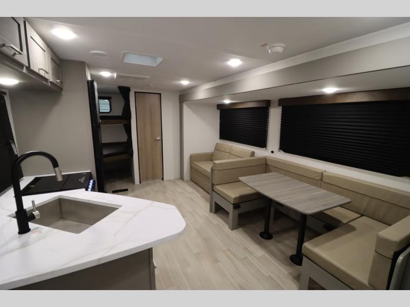 A large slide, front private bedroom, and double-size bunks make this Hideout Sport Double Axle the ultimate travel trailer! You will enjoy a walk-around queen bed in the bedroom plus dual closets and nightstands for your things. The full bath is towards the back and beside the bunks for easy nighttime use, and there is a pass-through storage outside for your gear. Head to the kitchen to prepare lunch on the cooktop, then dine at the U-shaped dinette and sofa within the large slide. If the weather is nice, you might just want to cook outdoors on the outside kitchen under the 18' power awning!