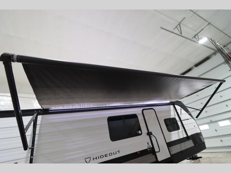 With any Hideout Sport travel trailer by Keystone you will enjoy simplified camping solutions that won't break the bank! Each model is constructed with a durable AlphaPly TPO roof membrane tinted safety glass windows, and an I-beam frame. There are power tongue jacks and heavy duty stabilizer jacks that will make it easier than ever to hitch up and go. An XL entry assist handle will also provide convenience, along with a power awning that will provide much wanted shade during the day. You will feel right at home with stylish decor, blackout night shades, and cozy bed with storage underneath!