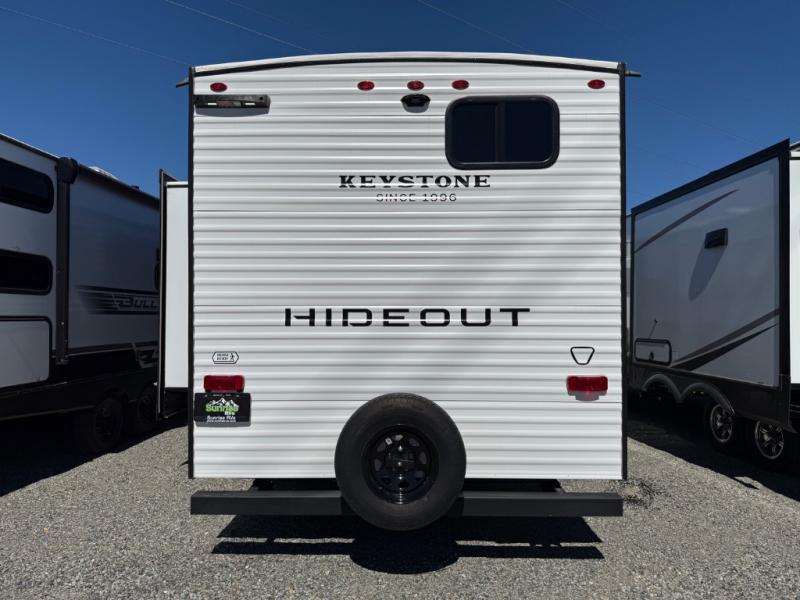 With any Hideout Sport travel trailer by Keystone you will enjoy simplified camping solutions that won't break the bank! Each model is constructed with a durable AlphaPly TPO roof membrane tinted safety glass windows, and an I-beam frame. There are power tongue jacks and heavy duty stabilizer jacks that will make it easier than ever to hitch up and go. An XL entry assist handle will also provide convenience, along with a power awning that will provide much wanted shade during the day. You will feel right at home with stylish decor, blackout night shades, and cozy bed with storage underneath!