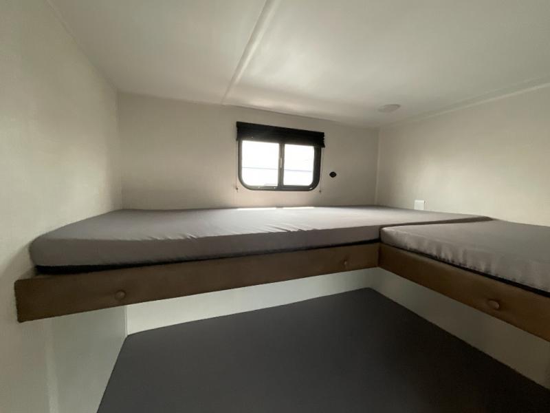 • Front bunkhouse with double-over-double bunks for kids, guests, or extra storage.