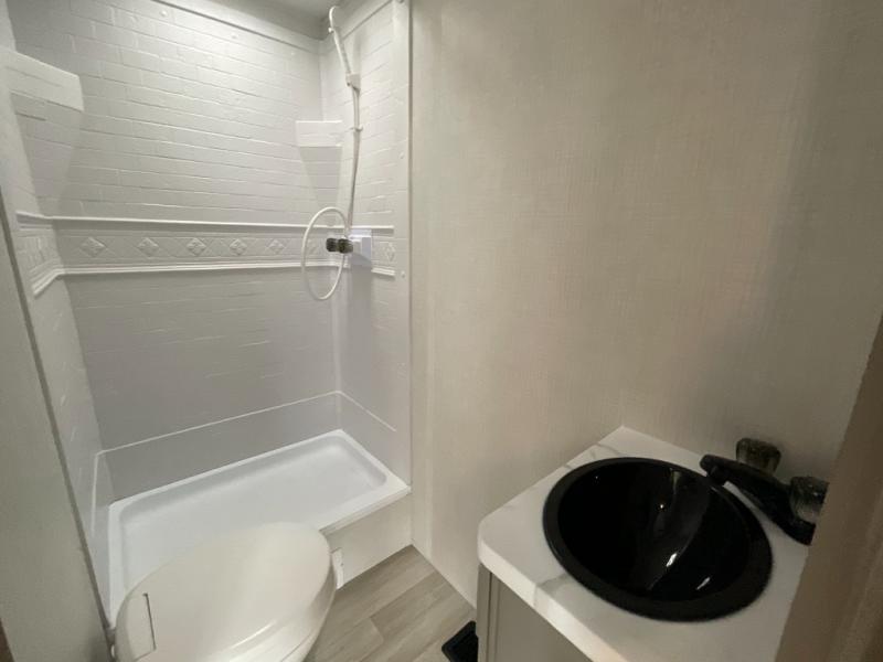 • Full bathroom with shower and practical storage for family convenience.