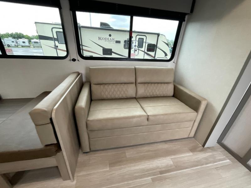 • Convertible dinette for flexible seating or additional sleeping options.