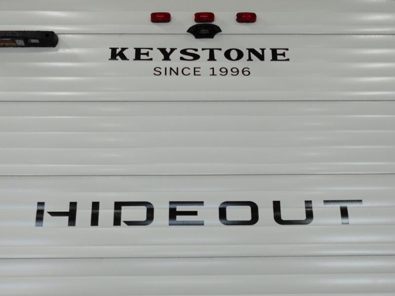 With any Hideout Sport travel trailer by Keystone you will enjoy simplified camping solutions that won't break the bank! Each model is constructed with a durable AlphaPly TPO roof membrane tinted safety glass windows, a walkable roof, and an I-beam frame. There are power tongue jacks and heavy duty stabilizer jacks that will make it easier than ever to hitch up and go. An XL entry assist handle will also provide convenience, along with a power awning that will provide much wanted shade during the day. You will feel right at home with stylish decor, blackout night shades, and cozy bed with storage underneath!