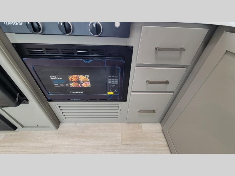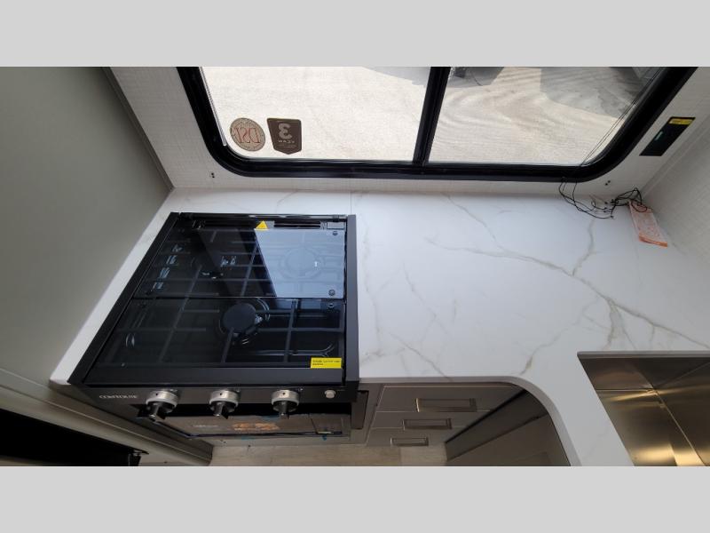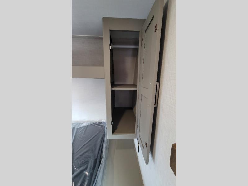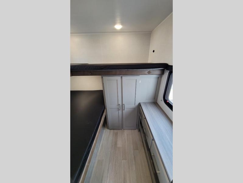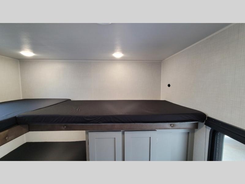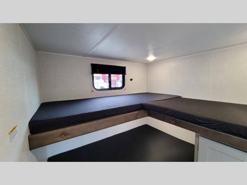 If you enjoy camping with extra friends and family, this travel trailer will be perfect for you! There is a rear bunkhouse with triple bunks, a dresser, plus a closet, making this room perfect for guests. Up front you'll find the private bedroom with a queen bed, dual nightstands and dual closets for your things, and the full bath is close by for convenience. The chef of your group will have a cooktop to prepare meals, ample counter space, plus a pantry for dry goods and snacks. Your crew can play a game at the booth dinette or relax on the sofa while dinner is being made, or they can relax outdoors under the 16' power awning!