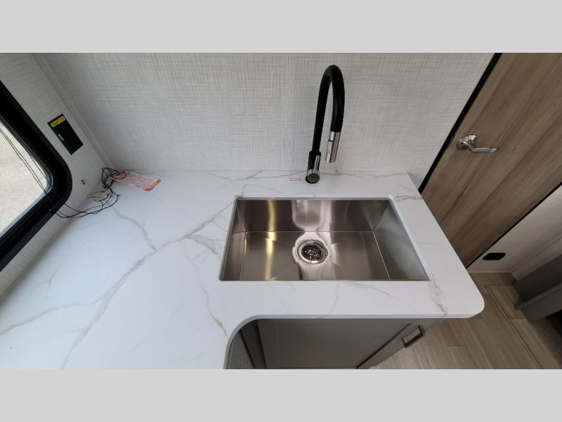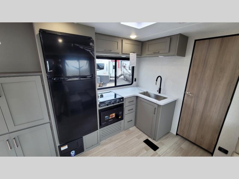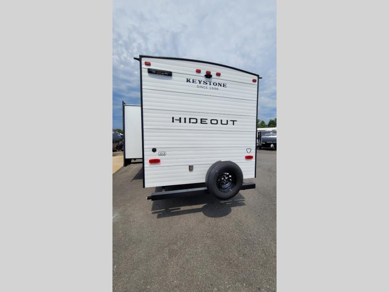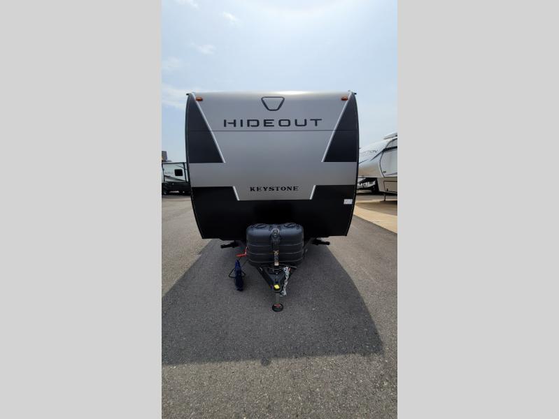 With any Hideout Sport travel trailer by Keystone you will enjoy simplified camping solutions that won't break the bank! Each model is constructed with a durable AlphaPly TPO roof membrane tinted safety glass windows, a walkable roof, and an I-beam frame. There are power tongue jacks and heavy duty stabilizer jacks that will make it easier than ever to hitch up and go. An XL entry assist handle will also provide convenience, along with a power awning that will provide much wanted shade during the day. You will feel right at home with stylish decor, blackout night shades, and cozy bed with storage underneath!